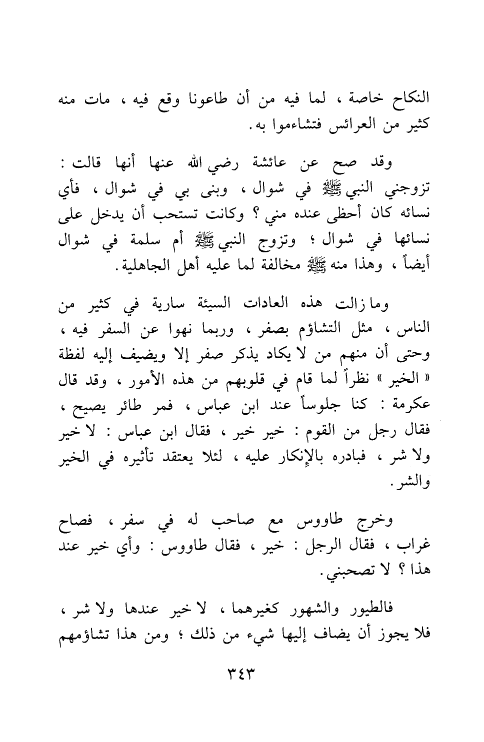 فالطيور والشهور كغيرهما، لا خير عندها ولا شر، فلا يجوز أن يضاف إليها شيء من ذلك; ومن هذا تشاؤمهم