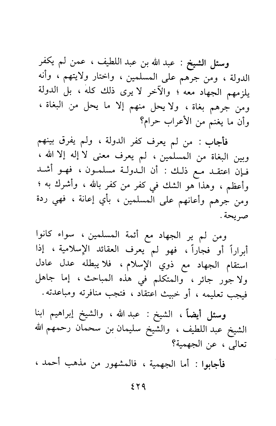وسئل أيضا، الشيخ عبد الله، والشيخ إبراهيم ابنا الشيخ عبد اللطيف، والشيخ سليمان بن سحمان رحمهم الله تعالى، عن الجهمية؟