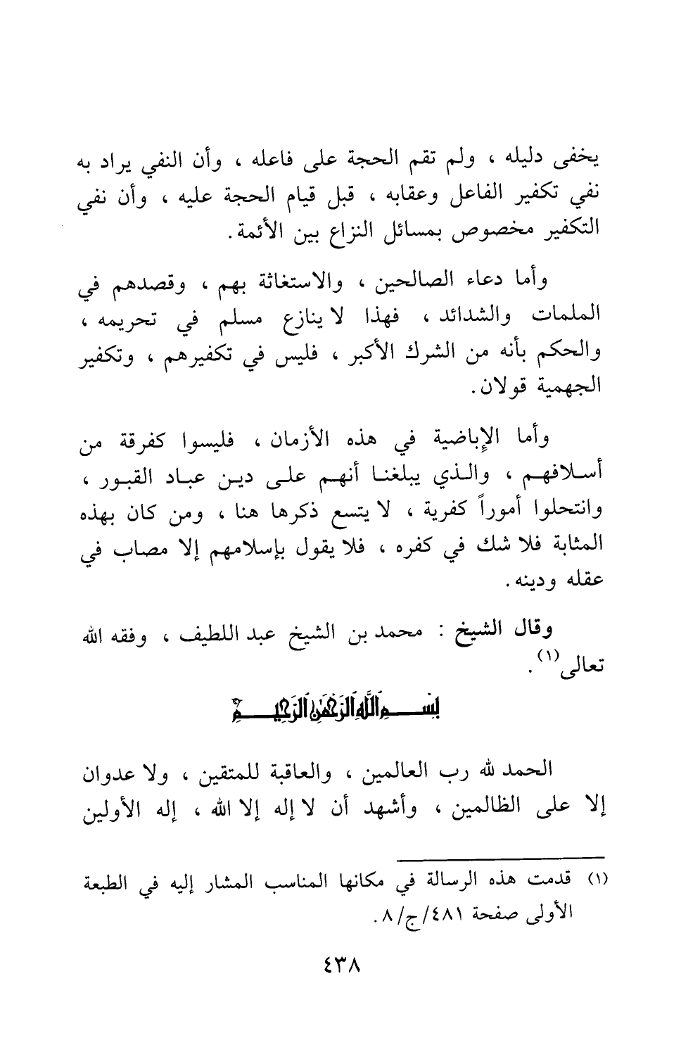 وقال الشيخ محمد بن الشيخ عبد اللطيف، وفقه الله تعالى 1: