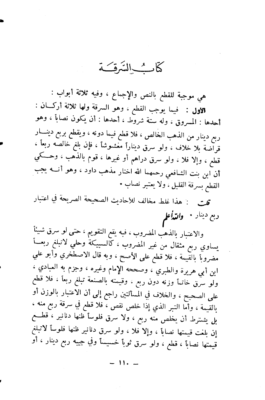 قُلْتُ: هَذَا غَلَطٌ مُخَالِفٌ لِلْأَحَادِيثِ الصَّحِيحَةِ الصَّرِيحَةِ فِي اعْتِبَارِ رُبُعِ دِينَارٍ. وَاللَّهُ أَعْلَمُ.