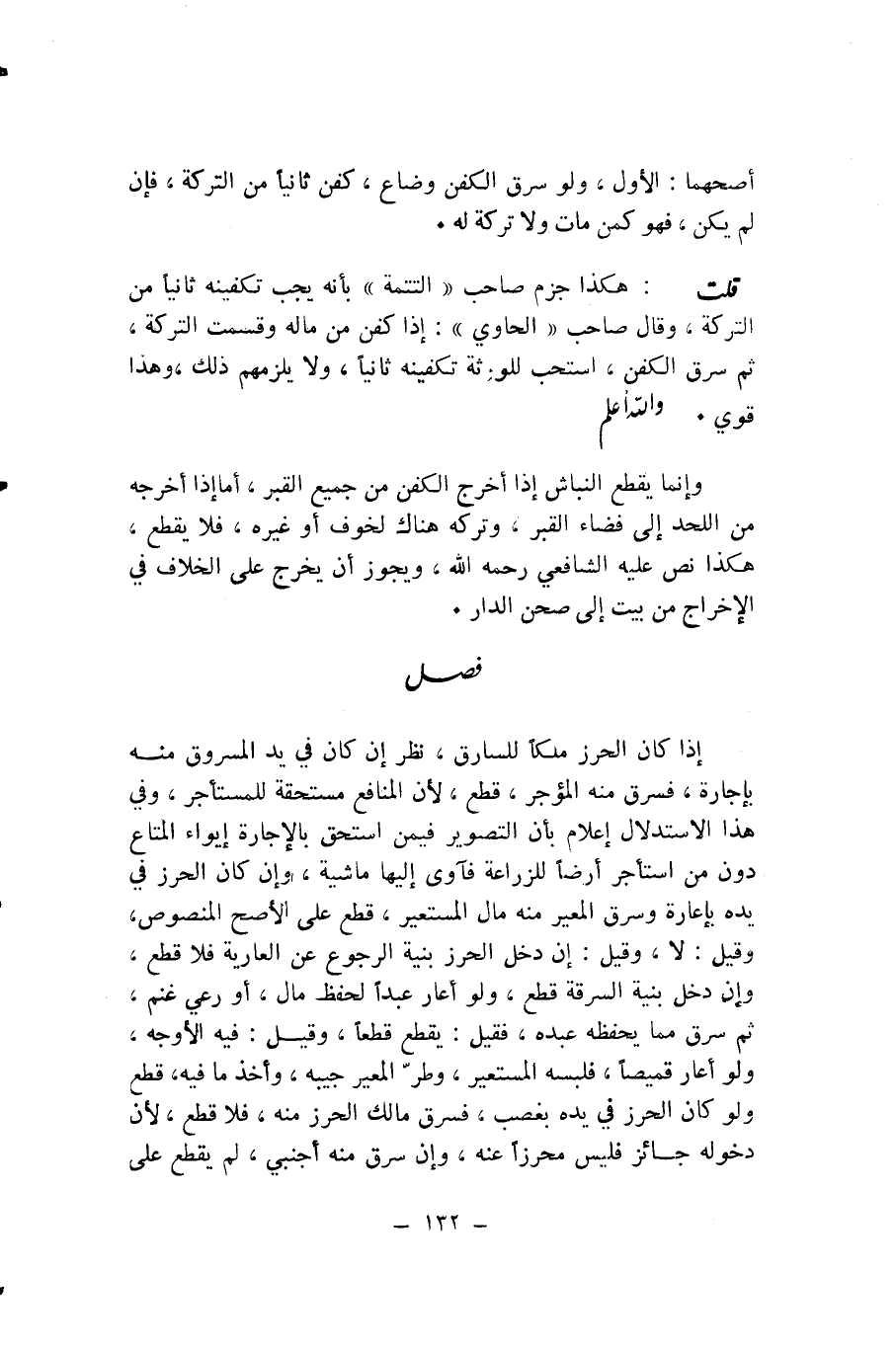 قُلْتُ: هَكَذَا جَزَمَ صَاحِبُ «التَّتِمَّةِ» بِأَنَّهُ يَجِبُ تَكْفِينُهُ ثَانِيًا مِنَ التَّرِكَةِ، وَقَالَ صَاحِبُ «الْحَاوِي» : إِذَا كُفِّنَ مِنْ مَالِهِ وَقُسِّمَتِ التَّرِكَةُ، ثُمَّ سُرِقَ الْكَفَنُ، اسْتُحِبَّ لِلْوَرَثَةِ تَكْفِينُهُ ثَانِيًا، وَلَا يَلْزَمُهُمْ ذَلِكَ، وَهَذَا قَوِيٌّ. وَاللَّهُ أَعْلَمُ.