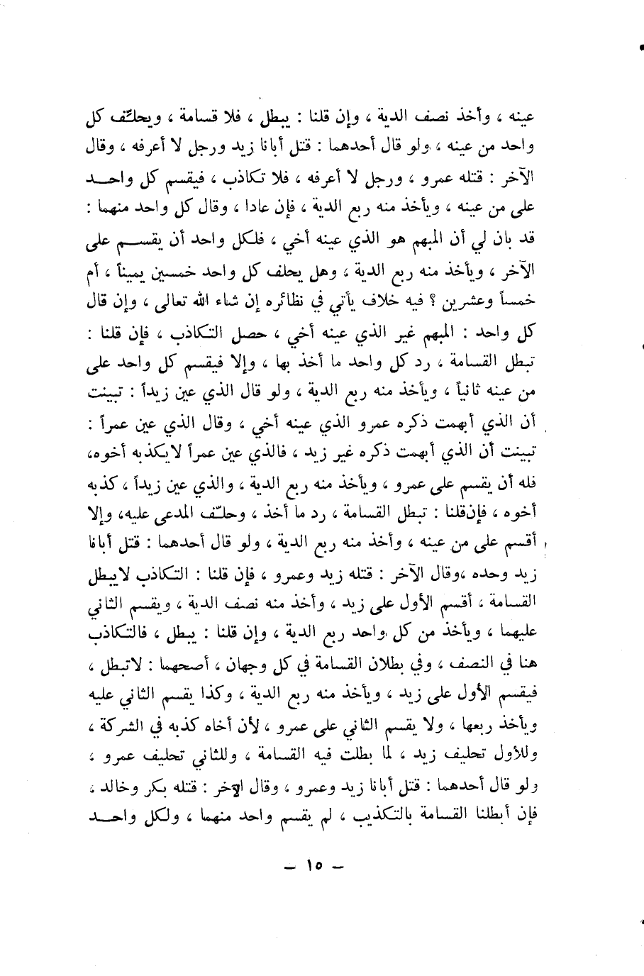 عَيَّنَهُ، وَأَخَذَ نِصْفَ الدِّيَةِ، وَإِنْ قُلْنَا: يَبْطُلُ، فَلَا قَسَامَةَ، وَيُحَلِّفُ كُلَّ وَاحِدٍ مَنْ عَيَّنَهُ، وَلَوْ قَالَ أَحَدُهُمَا: قَتَلَ أَبَانَا زَيْدٌ وَرَجُلٌ لَا أَعْرِفُهُ، وَقَالَ الْآخَرُ: قَتَلَهُ عَمْرٌو، وَرَجُلٌ لَا أَعْرِفُهُ، فَلَا تَكَاذُبَ، فَيُقْسِمُ كُلُّ وَاحِدٍ عَلَى مَنْ عَيَّنَهُ، وَيَأْخُذُ مِنْهُ رُبُعَ الدِّيَةِ، فَإِنْ عَادَا، وَقَالَ كُلُّ وَاحِدٍ مِنْهُمَا: قَدْ بَانَ لِي أَنَّ الْمُبْهَمَ هُوَ الَّذِي عَيَّنَهُ أَخِي، فَلِكُلِّ وَاحِدٍ أَنْ يُقْسِمَ عَلَى الْآخَرِ، وَيَأْخُذَ مِنْهُ رُبُعَ الدِّيَةِ، وَهَلْ يَحْلِفُ كُلُّ وَاحِدٍ خَمْسِينَ يَمِينًا، أَمْ خَمْسًا وَعِشْرِينَ؟ فِيهِ خِلَافٌ يَأْتِي فِي نَظَائِرِهِ إِنْ شَاءَ اللَّهُ تَعَالَى، وَإِنْ قَالَ كُلُّ وَاحِدٍ: الْمُبْهَمُ غَيْرُ الَّذِي عَيَّنَهُ أَخِي، حَصَلَ التَّكَاذُبُ، فَإِنْ قُلْنَا: تَبْطُلُ الْقَسَامَةُ، رَدَّ كُلُّ وَاحِدٍ مَا أَخَذَ بِهَا، وَإِلَّا فَيُقْسِمُ كُلُّ وَاحِدٍ عَلَى مَنْ عَيَّنَهُ ثَانِيًا، وَيَأْخُذُ مِنْهُ رُبُعَ الدِّيَةِ، وَلَوْ قَالَ الَّذِي عَيَّنَ زَيْدًا: تَبَيَّنْتُ أَنَّ الَّذِي أَبْهَمْتُ ذِكْرَهُ عَمْرٌو الَّذِي عَيَّنَهُ أَخِي، وَقَالَ الَّذِي عَيَّنَ عَمْرًا: تَبَيَّنْتُ أَنَّ الَّذِي أَبْهَمْتُ ذِكْرَهُ غَيْرُ زَيْدٍ، فَالَّذِي عَيَّنَ عَمْرًا لَا يُكَذِّبُهُ أَخُوهُ، فَلَهُ أَنْ يُقْسِمَ عَلَى عَمْرٍو، وَيَأْخُذَ مِنْهُ رُبُعَ الدِّيَةِ، وَالَّذِي عَيَّنَ زَيْدًا، كَذَّبَهُ أَخُوهُ، فَإِنْ قُلْنَا: تَبْطُلُ الْقَسَامَةُ، رَدَّ مَا أَخَذَ، وَحَلَّفَ الْمُدَّعَى عَلَيْهِ، وَإِلَّا أَقْسَمَ عَلَى مَنْ عَيَّنَهُ، وَأَخَذَ مِنْهُ رُبُعَ الدِّيَةِ، وَلَوْ قَالَ أَحَدُهُمَا: قَتَلَ أَبَانَا زِيدٌ وَحْدَهُ، وَقَالَ الْآخَرُ: قَتَلَهُ زَيْدٌ وَعَمْرٌو، فَإِنْ قُلْنَا: التَّكَاذُبُ لَا يُبْطِلُ الْقَسَامَةَ، أَقْسَمَ الْأَوَّلُ عَلَى زَيْدٍ، وَأَخَذَ مِنْهُ نِصْفَ الدِّيَةِ، وَيُقْسِمُ الثَّانِي عَلَيْهِمَا، وَيَأْخُذُ مِنْ كُلِّ وَاحِدٍ رُبُعَ الدِّيَةِ، وَإِنْ قُلْنَا: يَبْطُلُ، فَالتَّكَاذُبُ هُنَا فِي النِّصْفِ، وَفِي بُطْلَانِ الْقَسَامَةِ فِي كُلٍّ وَجْهَانِ، أَصَحُّهُمَا: لَا تَبْطُلُ، فَيُقْسِمُ الْأَوَّلُ عَلَى زَيْدٍ، وَيَأْخُذُ مِنْهُ رُبُعَ الدِّيَةِ، وَكَذَا يُقْسِمُ الثَّانِي عَلَيْهِ وَيَأْخُذُ رُبُعَهَا، وَلَا يُقْسِمُ الثَّانِي عَلَى عَمْرٍو ; لِأَنَّ أَخَاهُ كَذَّبَهُ فِي الشَّرِكَةِ، وَلِلْأَوَّلِ تَحْلِيفُ زَيْدٍ، لَمَّا بَطَلَتْ فِيهِ الْقَسَامَةُ، وَلِلثَّانِي تَحْلِيفُ عَمْرٍو.