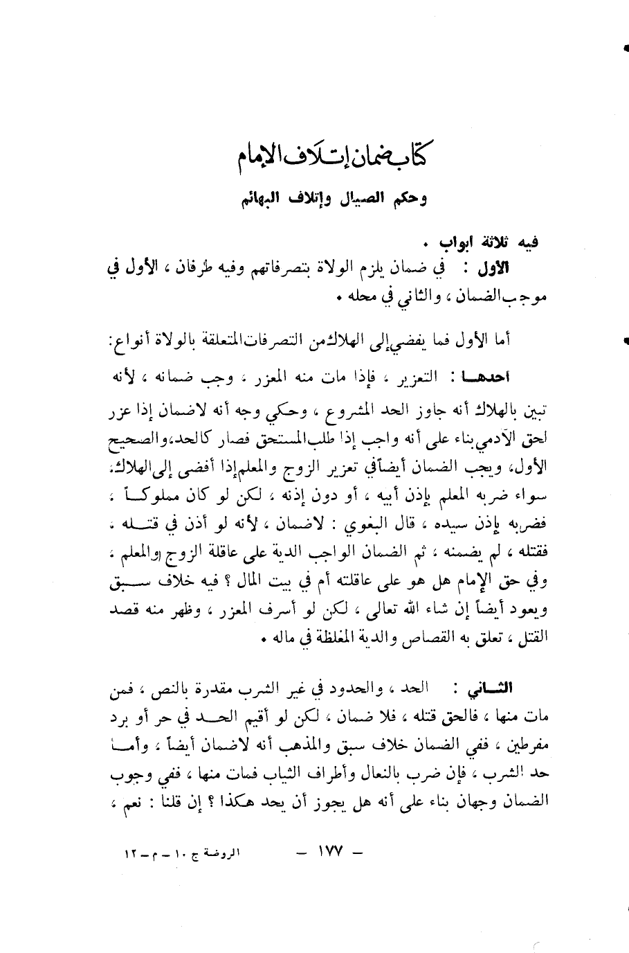 كِتَابُ ضَمَانِ إِتْلَافِ الْإِمَامِ