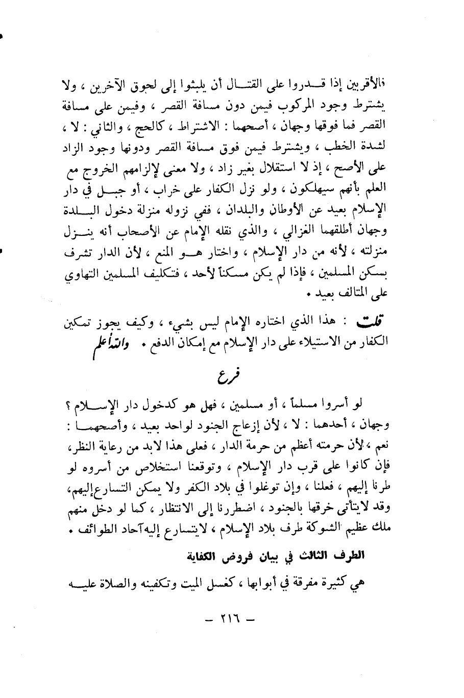 الطَّرَفُ الثَّالِثُ فِي بَيَانِ فُرُوضِ الْكِفَايَةِ