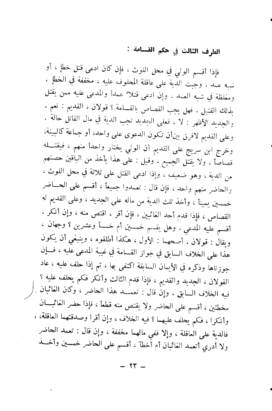 الطَّرَفُ الثَّالِثُ فِي حُكْمِ الْقَسَامَةِ: