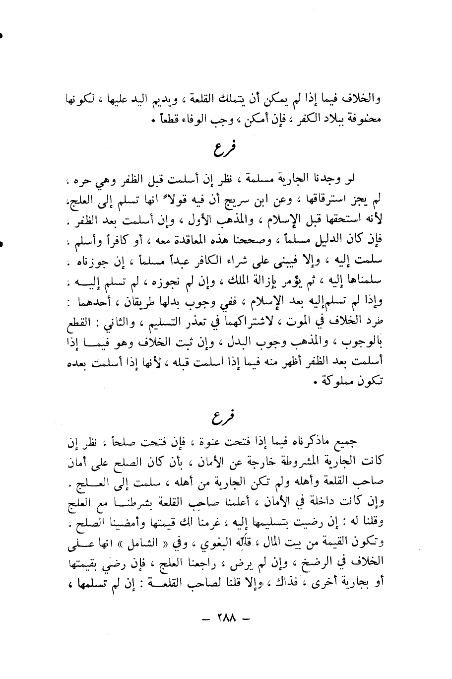وَالْخِلَافُ فِيمَا إِذَا لَمْ يُمْكِنْ أَنْ يَتَمَلَّكَ الْقَلْعَةَ، وَيُدِيمَ الْيَدَ عَلَيْهَا، لِكَوْنِهَا مَحْفُوفَةً بِبِلَادِ الْكُفْرِ، فَإِنْ أَمْكَنَ، وَجَبَ الْوَفَاءُ قَطْعًا.
