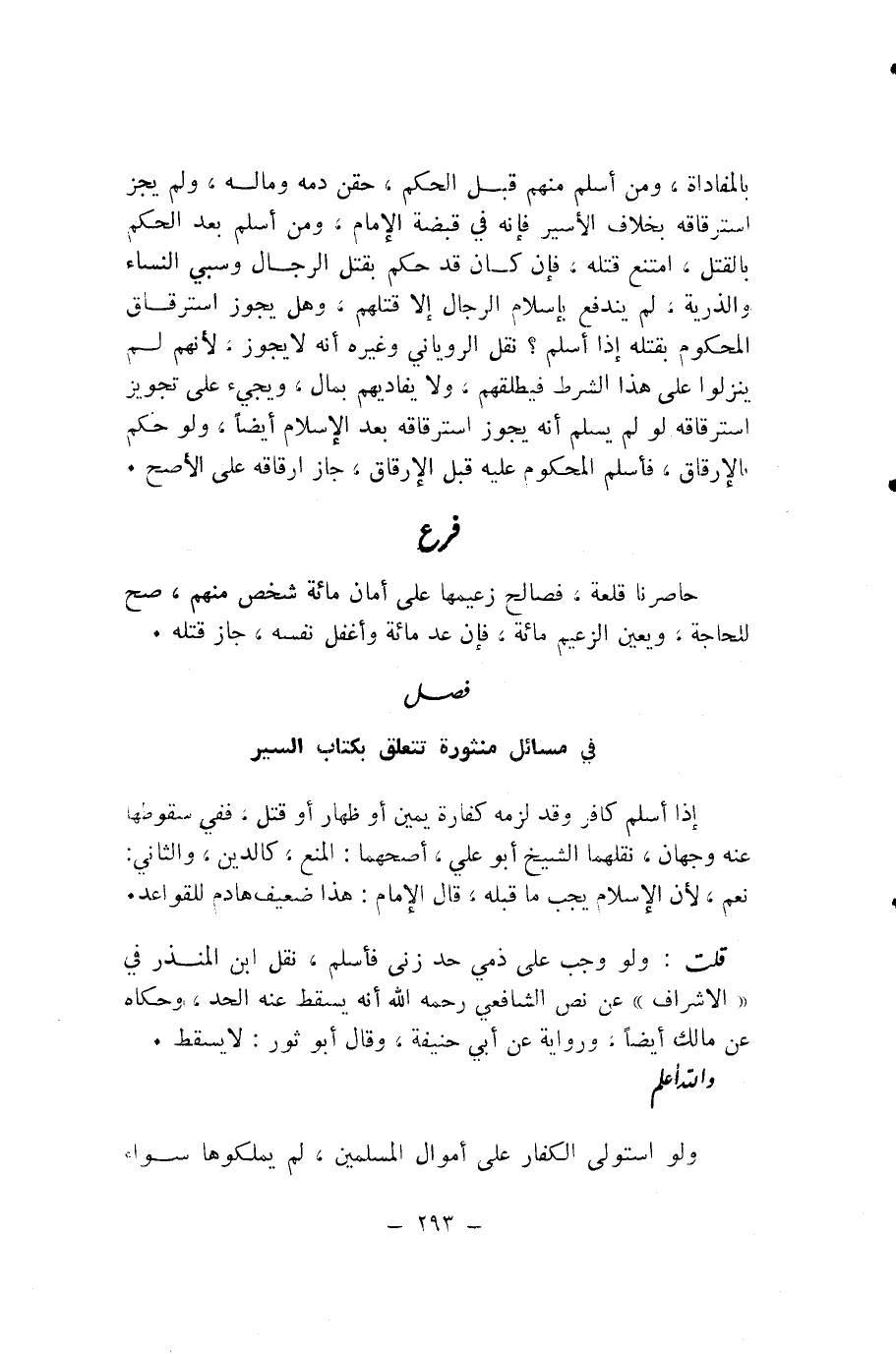 فِي مَسَائِلَ مَنْثُورَةٍ تَتَعَلَّقُ بِكِتَابِ السَّيْرِ