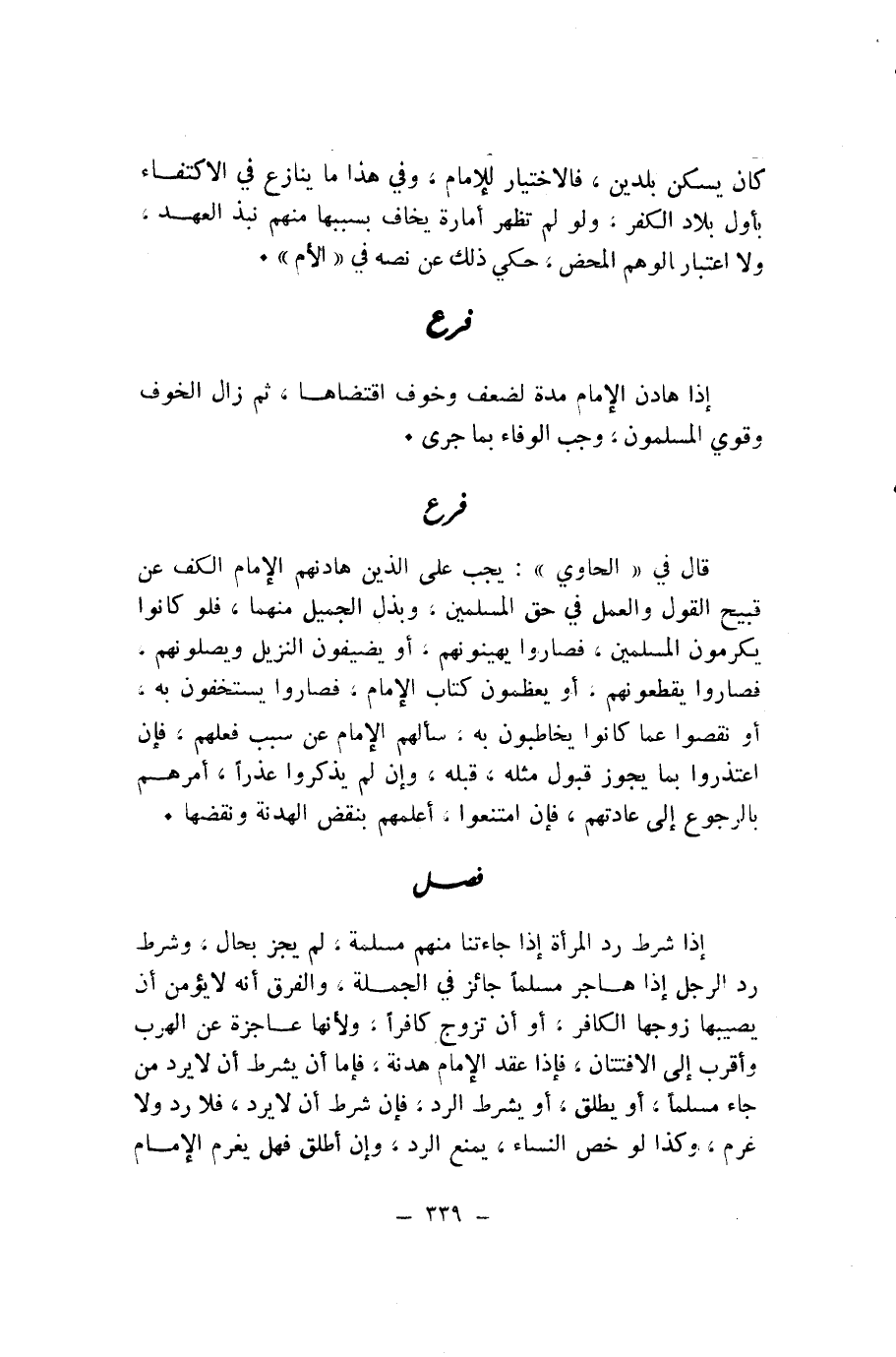 إِذَا هَادَنَ الْإِمَامُ مُدَّةً لِضَعْفٍ وَخَوْفٍ اقْتَضَاهَا، ثُمَّ زَالَ الْخَوْفُ وَقَوِيَ الْمُسْلِمُونَ، وَجَبَ الْوَفَاءُ بِمَا جَرَى.