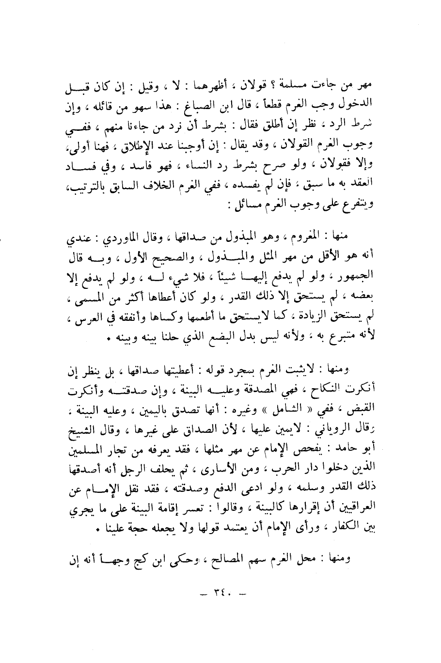 وَمِنْهَا: لَا يَثْبُتُ الْغُرْمُ بِمُجَرَّدِ قَوْلِهِ: أَعْطَيْتُهَا صَدَاقَهَا، بَلْ يُنْظَرُ إِنْ أَنْكَرَتِ النِّكَاحَ، فَهِيَ الْمُصَدَّقَةُ وَعَلَيْهِ الْبَيِّنَةُ، وَإِنْ صَدَّقَتْهُ وَأَنْكَرَتِ الْقَبْضَ، فَفِي «الشَّامِلِ» وَغَيْرِهِ: أَنَّهَا تُصَدَّقُ بِالْيَمِينِ، وَعَلَيْهِ الْبَيِّنَةُ، وَقَالَ الرُّويَانِيُّ: لَا يَمِينَ عَلَيْهَا، لِأَنَّ الصَّدَاقَ عَلَى غَيْرِهَا، وَقَالَ الشَّيْخُ أَبُو حَامِدٍ: يَفْحَصُ الْإِمَامُ عَنْ مَهْرِ مِثْلِهَا، فَقَدْ يَعْرِفُهُ مَنْ تُجَّارِ الْمُسْلِمِينَ الَّذِينَ دَخَلُوا دَارَ الْحَرْبِ، وَمِنَ الْأَسَارَى، ثُمَّ يَحْلِفُ الرَّجُلُ أَنَّهُ أَصْدَقَهَا ذَلِكَ الْقَدْرَ وَسَلَّمَهُ، وَلَوِ ادَّعَى الدَّفْعَ وَصَدَّقَتْهُ، فَقَدْ نَقَلَ الْإِمَامُ عَنِ الْعِرَاقِيِّينَ أَنَّ إِقْرَارَهَا كَالْبَيِّنَةِ، وَقَالُوا: تَعْسِرُ إِقَامَةُ الْبَيِّنَةِ عَلَى مَا يَجْرِي بَيْنَ الْكُفَّارِ، وَرَأَى الْإِمَامُ أَنْ يَعْتَمِدَ قَوْلَهَا وَلَا يَجْعَلَهُ حُجَّةً عَلَيْنَا.