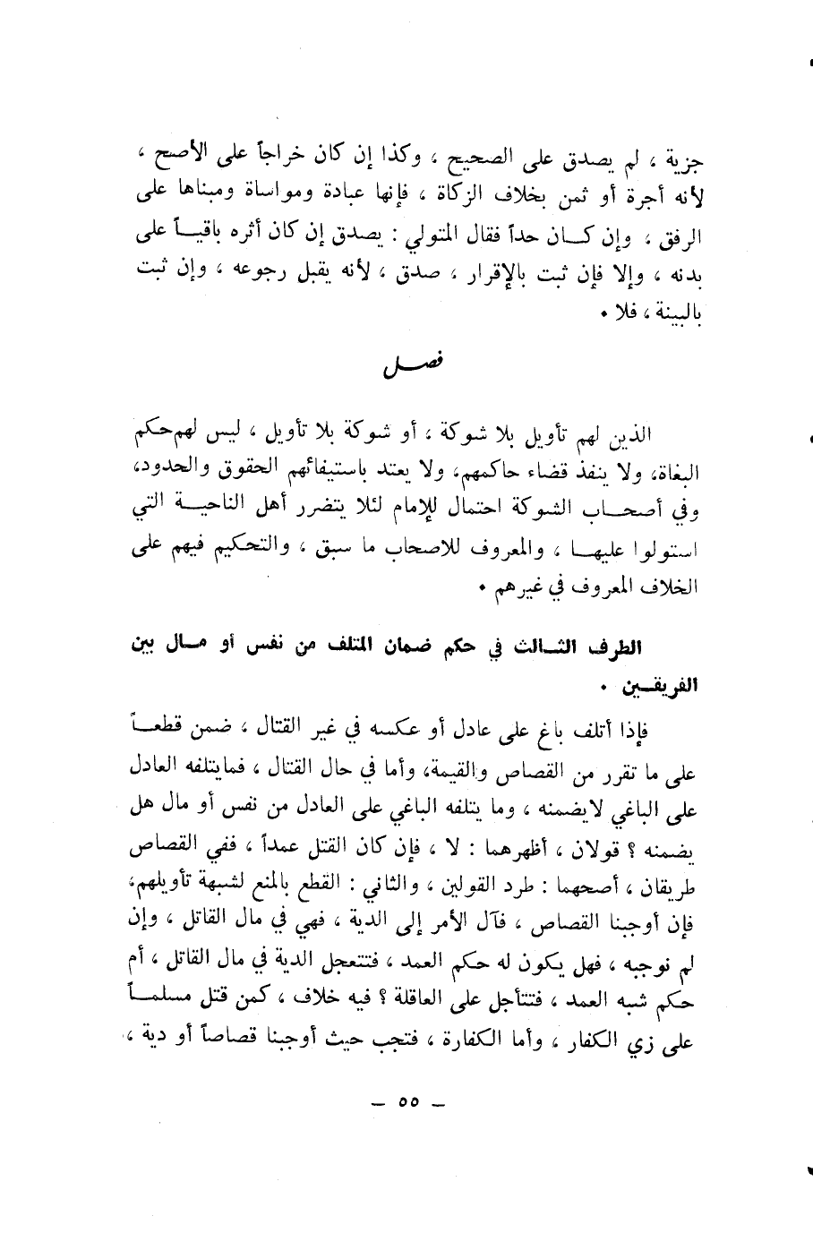 الَّذِينَ لَهُمْ تَأْوِيلٌ بِلَا شَوْكَةٍ، أَوْ شَوْكَةٌ بِلَا تَأْوِيلٍ، لَيْسَ لَهُمْ حُكْمُ الْبُغَاةِ، وَلَا يَنْفُذُ قَضَاءُ حَاكِمِهِمْ، وَلَا يُعْتَدُّ بِاسْتِيفَائِهِمُ الْحُقُوقَ وَالْحُدُودَ، وَفِي أَصْحَابِ الشَّوْكَةِ احْتِمَالٌ لِلْإِمَامِ لِئَلَّا يَتَضَرَّرَ أَهْلُ النَّاحِيَةِ الَّتِي اسْتَوْلَوْا عَلَيْهَا، وَالْمَعْرُوفُ لِلْأَصْحَابِ مَا سَبَقَ، وَالتَّحْكِيمُ فِيهِمْ عَلَى الْخِلَافِ الْمَعْرُوفِ فِي غَيْرِهِمْ.