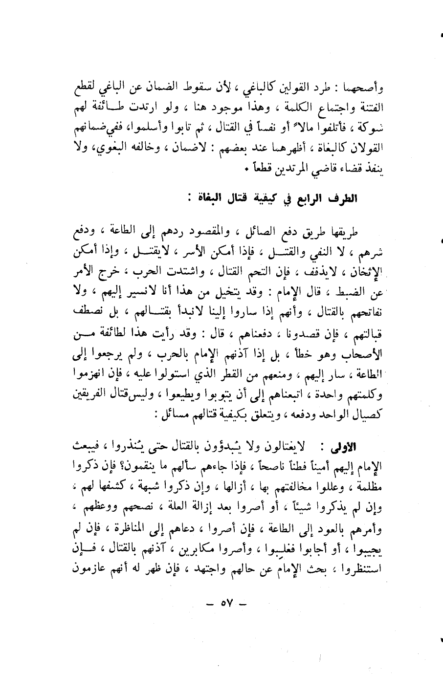 الطَّرَفُ الرَّابِعُ فِي كَيْفِيَّةِ قِتَالِ الْبُغَاةِ: