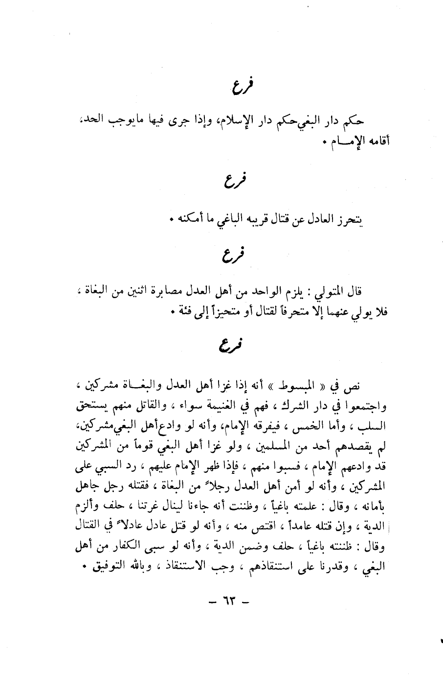 يَتَحَرَّزُ الْعَادِلُ عَنْ قِتَالِ قَرِيبِهِ الْبَاغِي مَا أَمْكَنَهُ.
