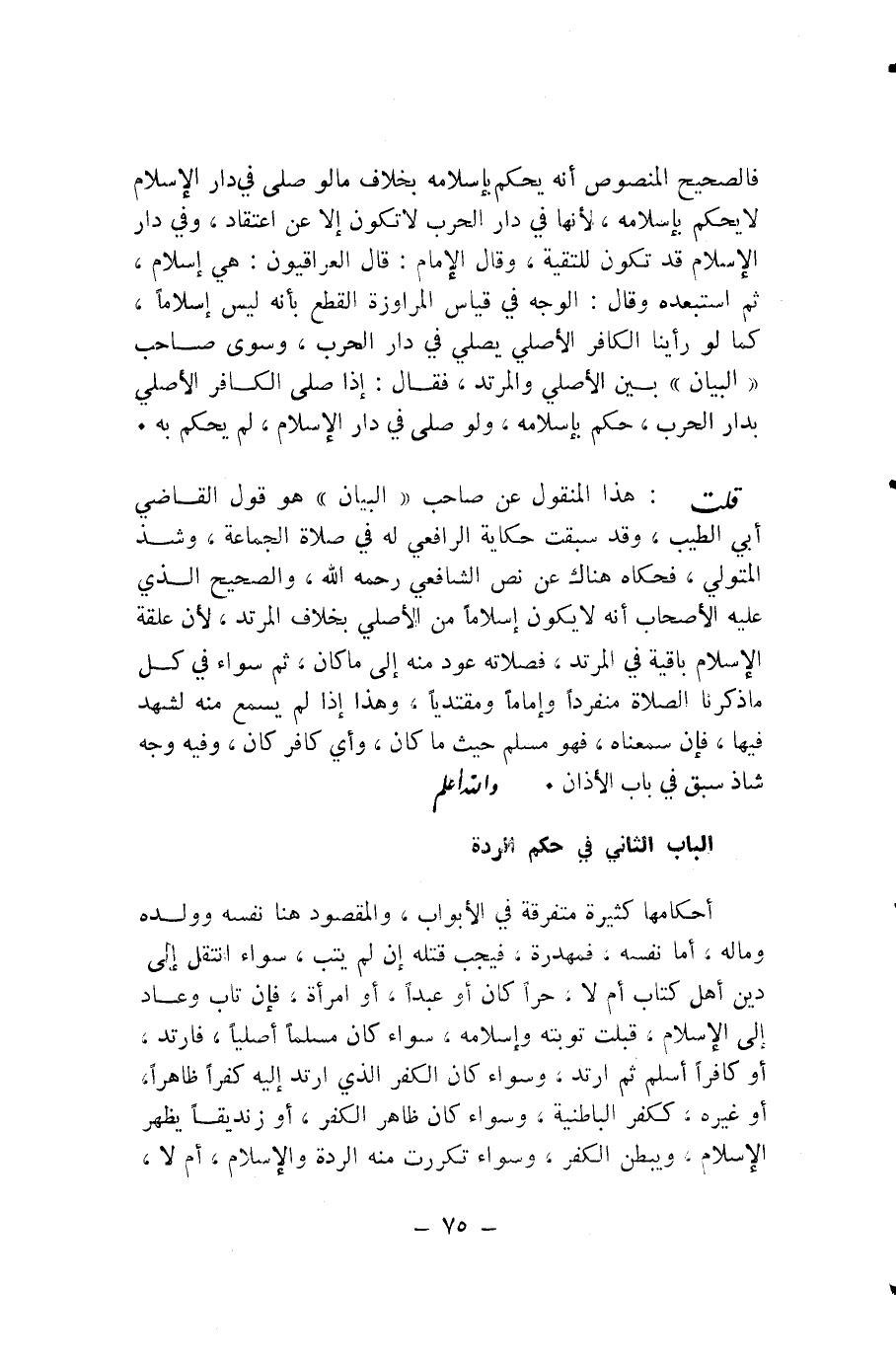 الْبَابُ الثَّانِي فِي حُكْمِ الرِّدَّةِ