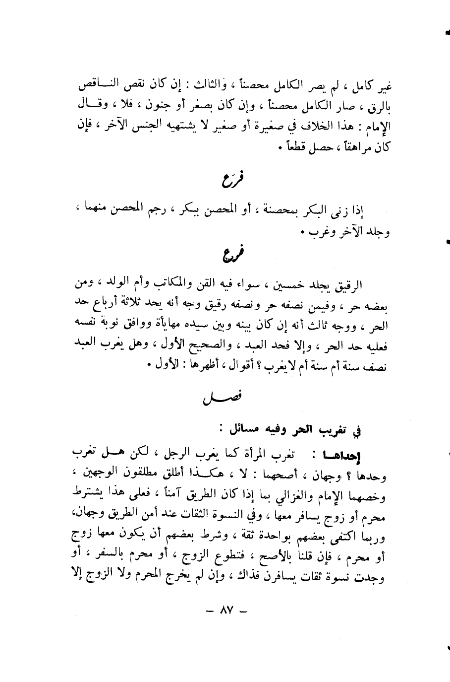 فِي تَغْرِيبِ الْحُرِّ وَفِيهِ مَسَائِلُ: