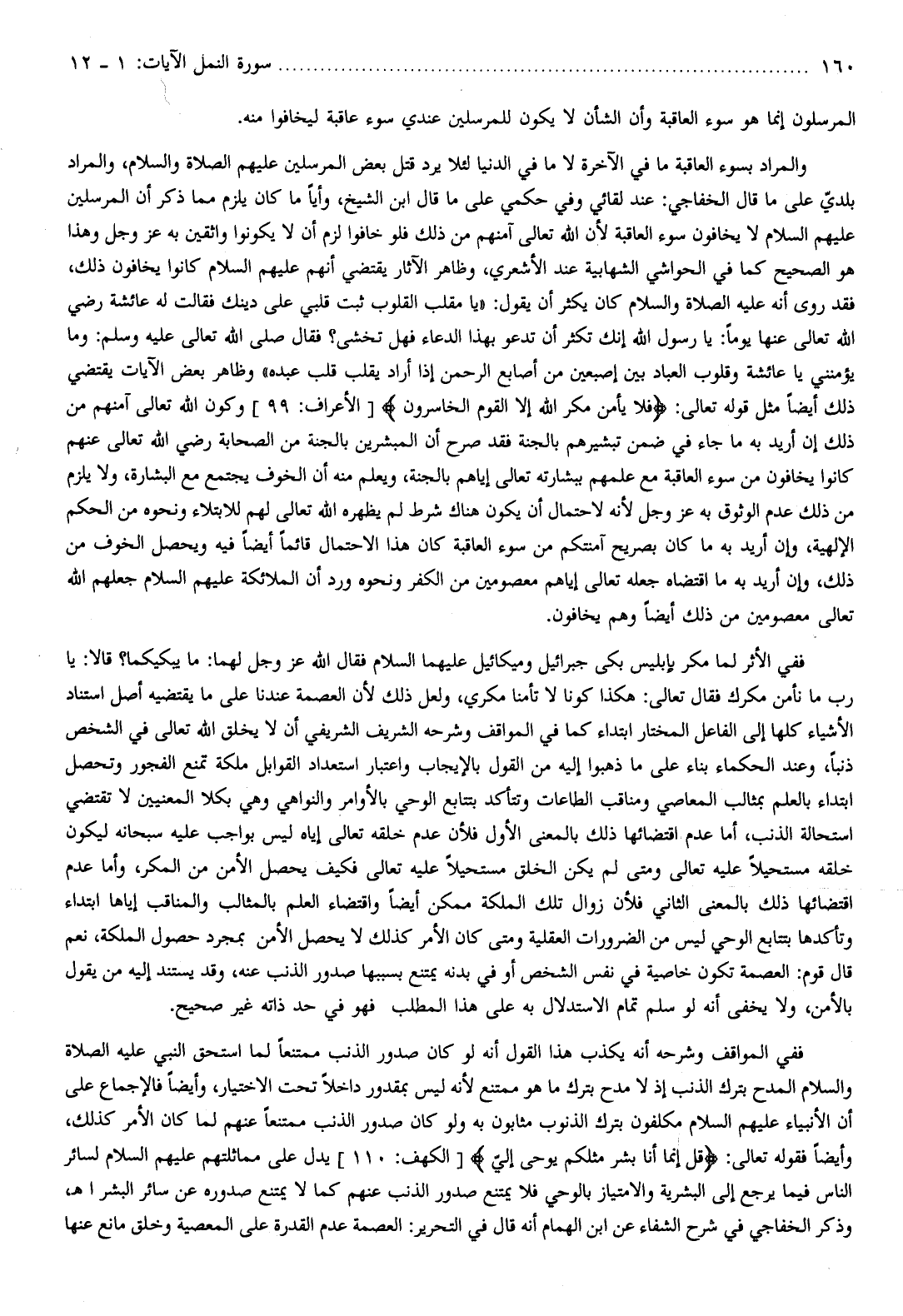 ففي المواقف وشرحه أنه يكذب هذا القول أنه لو كان صدور الذنب ممتنعا لما استحق النبي عليه الصلاة والسلام المدح بترك الذنب إذ لا مدح بترك ما هو ممتنع لأنه ليس بمقدور داخلا تحت الاختيار، وأيضا فالإجماع على أن الأنبياء عليهم السلام مكلفون بترك الذنوب مثابون به ولو كان صدور الذنب ممتنعا عنهم لما كان الأمر كذلك، وأيضا فقوله تعالى: قُلْ إِنَّما أَنَا بَشَرٌ مِثْلُكُمْ يُوحى إِلَيَّ [الكهف: 110] يدل على مماثلتهم عليهم السلام لسائر الناس فيما يرجع إلى البشرية والامتياز بالوحي فلا يمتنع صدور الذنب عنهم كما لا يمتنع صدوره عن سائر البشر اهـ، وذكر الخفاجي في شرح الشفاء عن ابن الهمام أنه قال في التحرير: العصمة عدم القدرة على المعصية وخلق مانع عنها