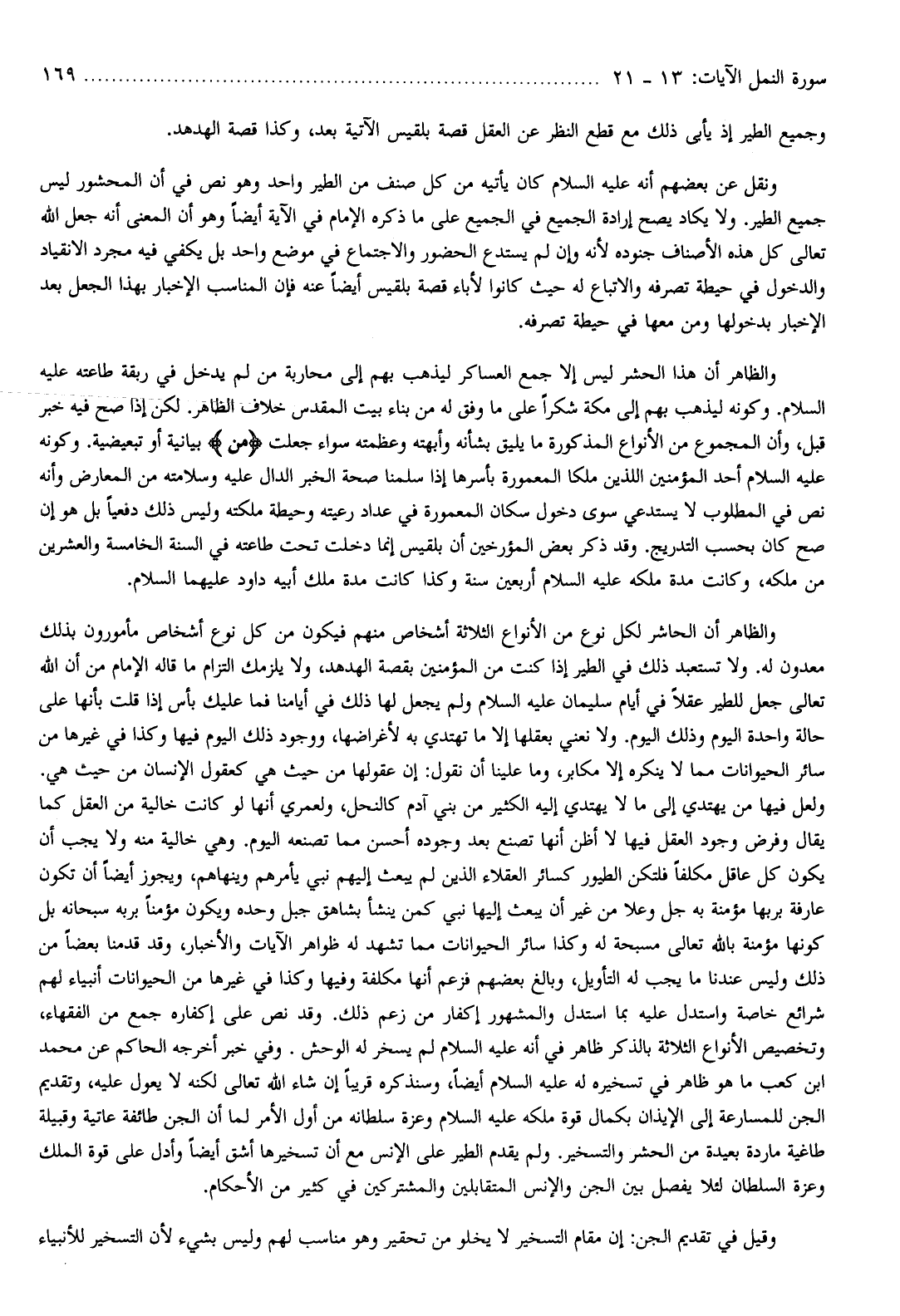وجميع الطير إذ يأبى ذلك مع قطع النظر عن العقل قصة بلقيس الآتية بعد، وكذا قصة الهدهد.