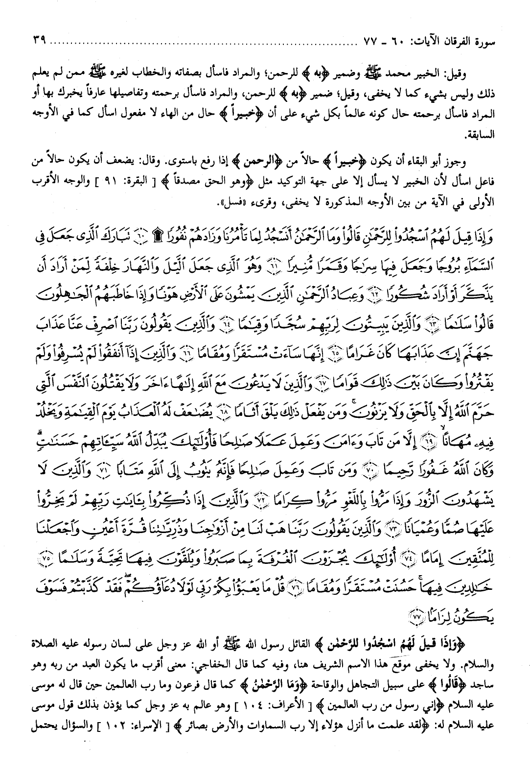 وجوز أبو البقاء أن يكون خَبِيراً حالا من الرَّحْمنُ إذا رفع باستوى. وقال: يضعف أن يكون حالا من فاعل اسأل لأن الخبير لا يسأل إلا على جهة التوكيد مثل وَهُوَ الْحَقُّ مُصَدِّقاً [البقرة: 91] والوجه الأقرب الأولى في الآية من بين الأوجه المذكورة لا يخفى، وقرىء «فسل» .