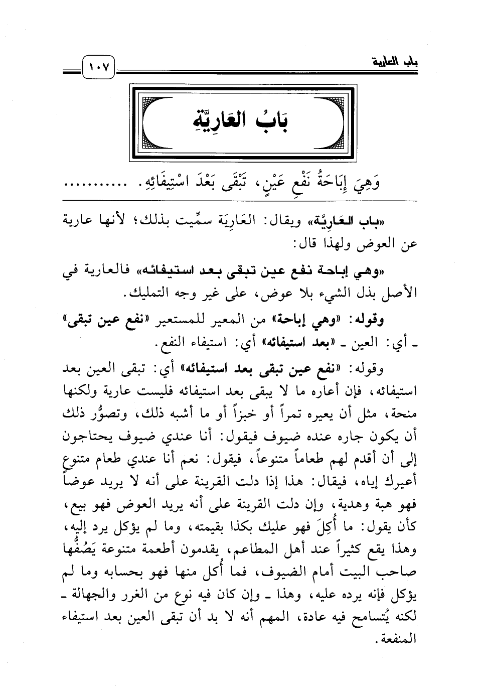 «باب العَارِيَّة» ويقال: العَارِيَة سمِّيت بذلك؛ لأنها عارية عن العوض ولهذا قال: