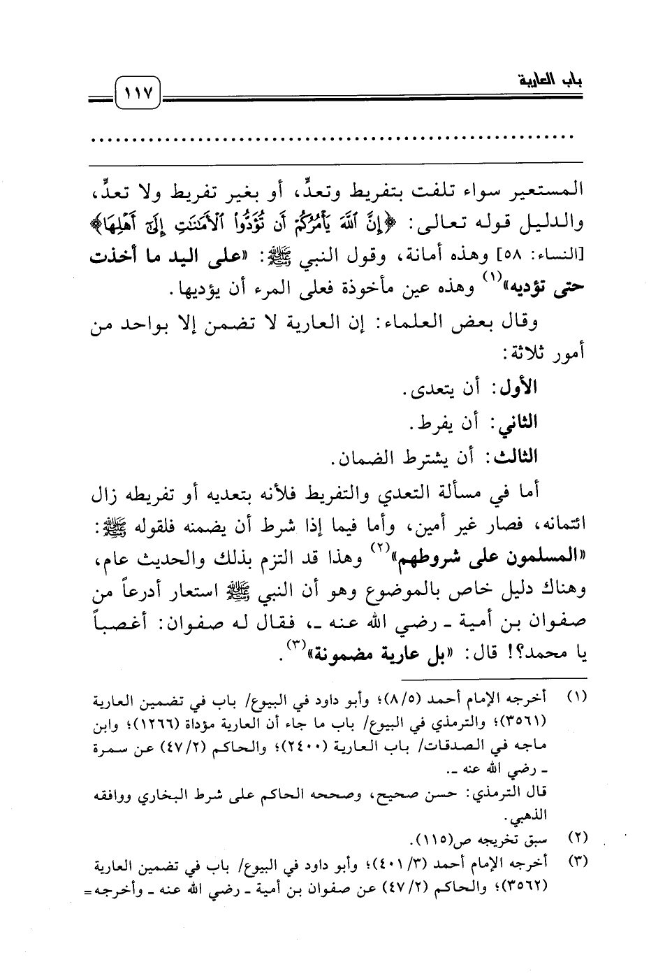 (¬1) أخرجه الإمام أحمد (5/ 8)؛ وأبو داود في البيوع/ باب في تضمين العارية (3561)؛ والترمذي في البيوع/ باب ما جاء أن العارية مؤداة (1266)؛ وابن ماجه في الصدقات/ باب العارية (2400)؛ والحاكم (2/ 47) عن سمرة ـ رضي الله عنه ـ.