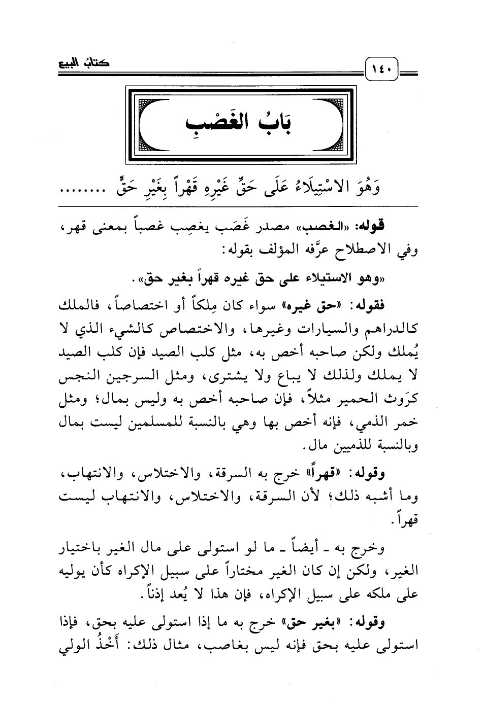 قوله: «الغصب» مصدر غَصَب يغصِب غصباً بمعنى قهر، وفي الاصطلاح عرَّفه المؤلف بقوله: