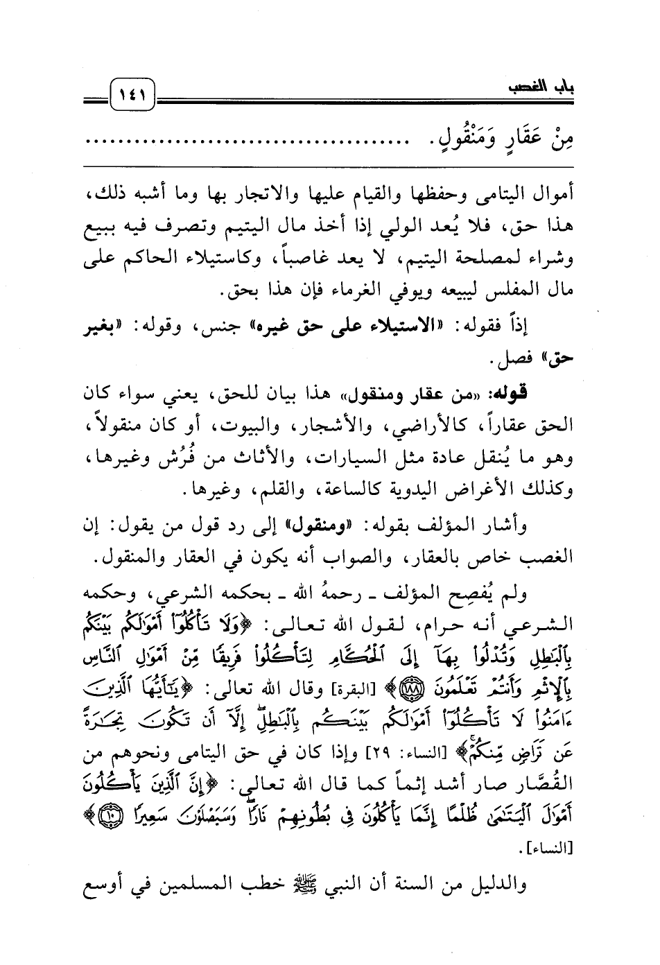 أموال اليتامى وحفظها والقيام عليها والاتجار بها وما أشبه ذلك، هذا حق، فلا يُعد الولي إذا أخذ مال اليتيم وتصرف فيه ببيع وشراء لمصلحة اليتيم، لا يعد غاصباً، وكاستيلاء الحاكم على مال المفلس ليبيعه ويوفي الغرماء فإن هذا بحق.
