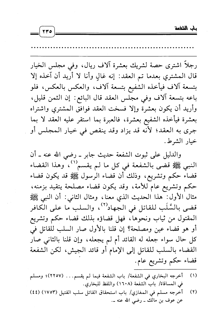 (¬1) أخرجه البخاري في الشفعة/ باب الشفعة فيما لم يقسم ... (2257)؛ ومسلم في المساقاة/ باب الشفعة (1608) واللفظ للبخاري.