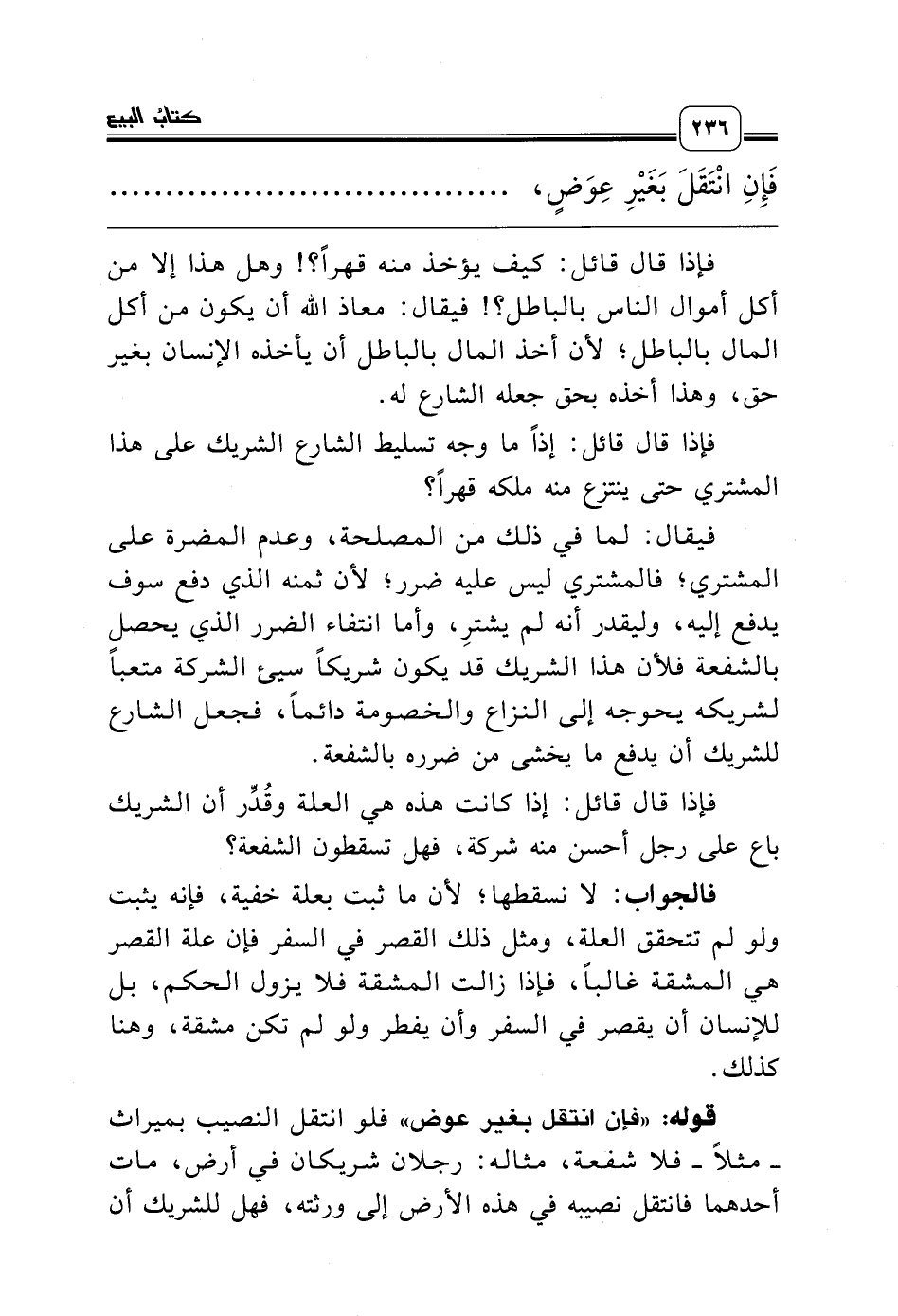 فإذا قال قائل: إذاً ما وجه تسليط الشارع الشريك على هذا المشتري حتى ينتزع منه ملكه قهراً؟