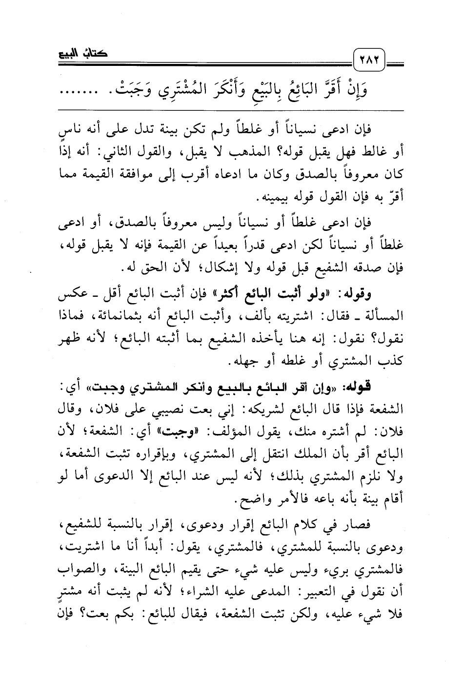 فصار في كلام البائع إقرار ودعوى، إقرار بالنسبة للشفيع، ودعوى بالنسبة للمشتري، فالمشتري، يقول: أبداً أنا ما اشتريت، فالمشتري بريء وليس عليه شيء حتى يقيم البائع البينة، والصواب أن نقول في التعبير: المدعى عليه الشراء؛ لأنه لم يثبت أنه مشترٍ فلا شيء عليه، ولكن تثبت الشفعة، فيقال للبائع: بكم بعت؟ فإن