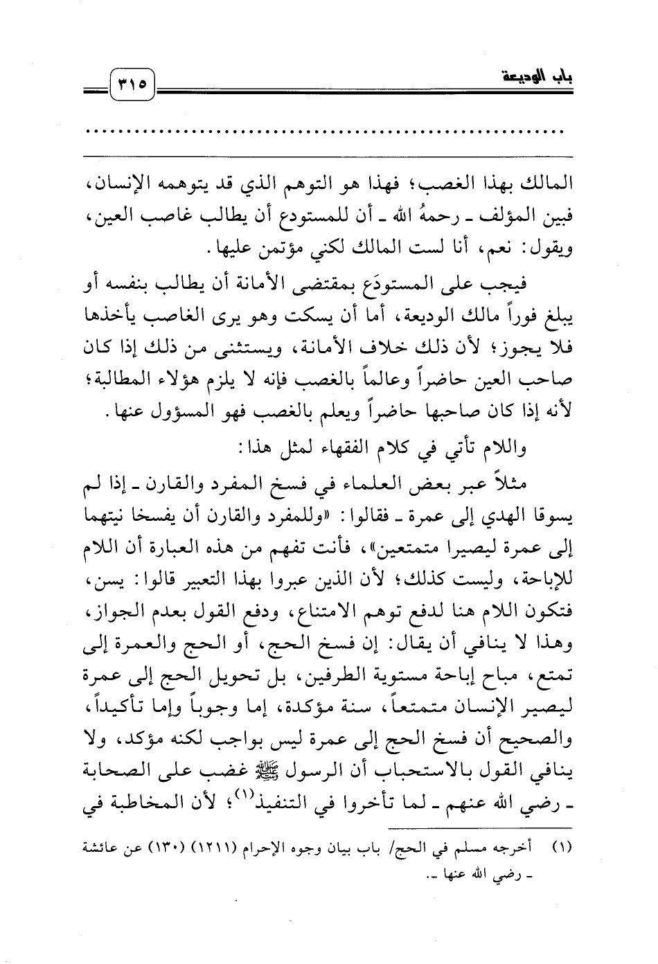 المالك بهذا الغصب؛ فهذا هو التوهم الذي قد يتوهمه الإنسان، فبين المؤلف ـ رحمه الله ـ أن للمستودع أن يطالب غاصب العين، ويقول: نعم، أنا لست المالك لكني مؤتمن عليها.