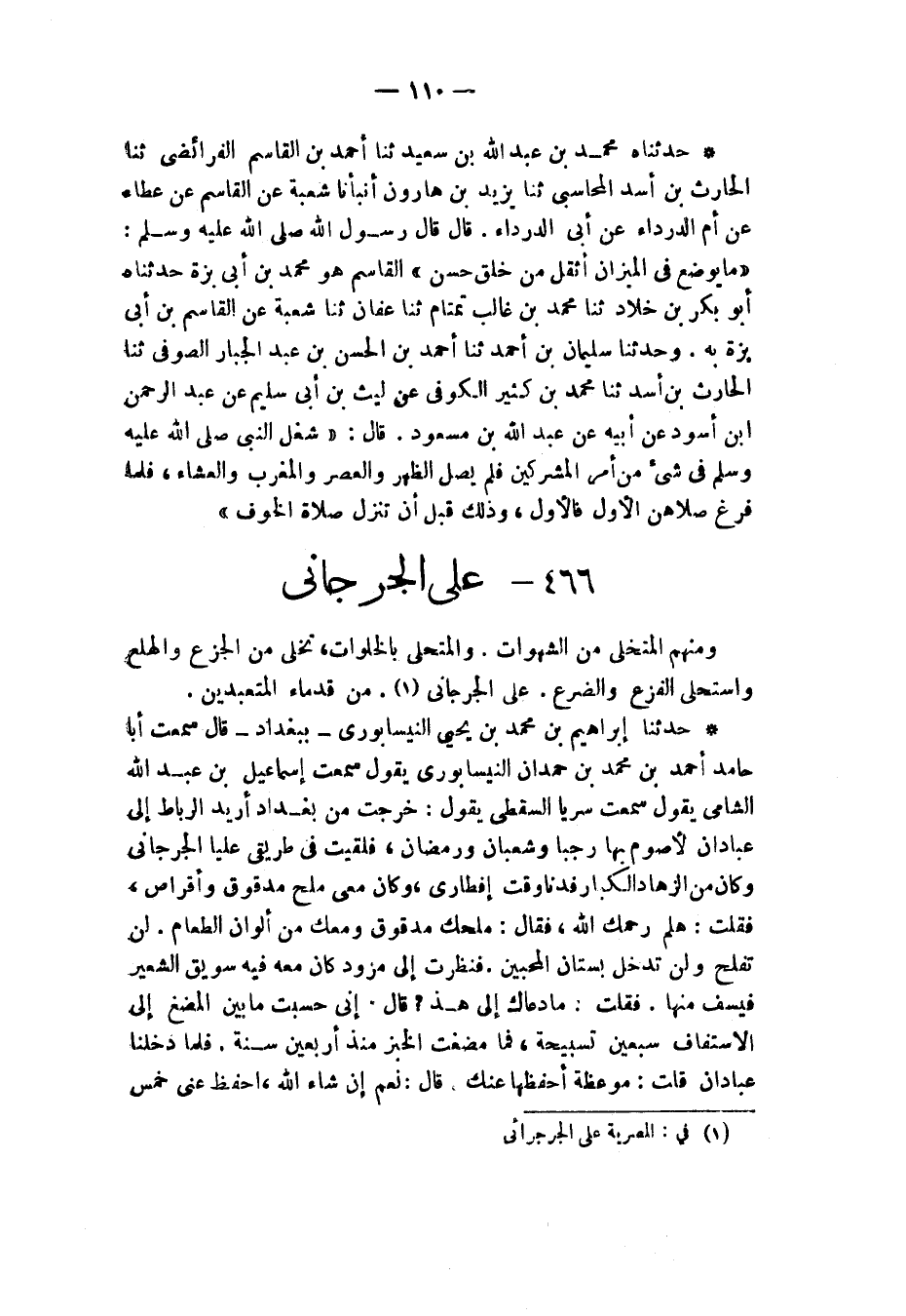 §عَلِيٌّ الْجُرْجَانِيُّ وَمِنْهُمُ الْمُتَخَلِّي مِنَ الشَّهَوَاتِ وَالْمُتَحَلِّي بِالْخَلَوَاتِ تَخَلَّى مِنَ الْجَزَعِ وَالْهَلَعِ وَاسْتَحْلَى الْفَزَعَ وَالضَّرَعَ عَلِيٌّ الْجُرْجَانِيُّ، مِنْ قُدَمَاءَ الْمُتَعَبِّدِينَ