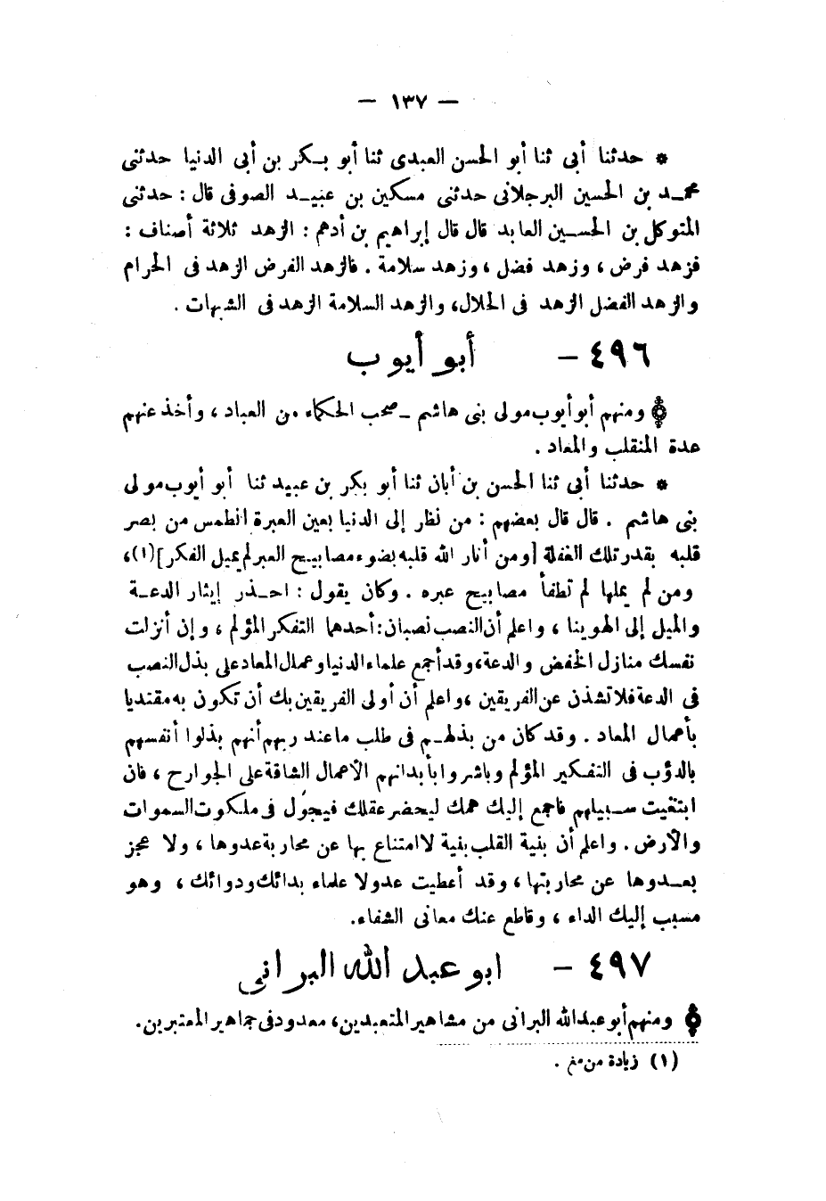 §أَبُو أَيُّوبَ وَمِنْهُمْ أَبُو أَيُّوبَ مَوْلَى بَنِي هَاشِمٍ صَحِبَ الْحُكَمَاءَ مِنَ الْعُبَّادِ وَأَخَذَ عَنْهُمْ عِدَّةَ الْمُنْقَلَبِ وَالْمَعَادِ