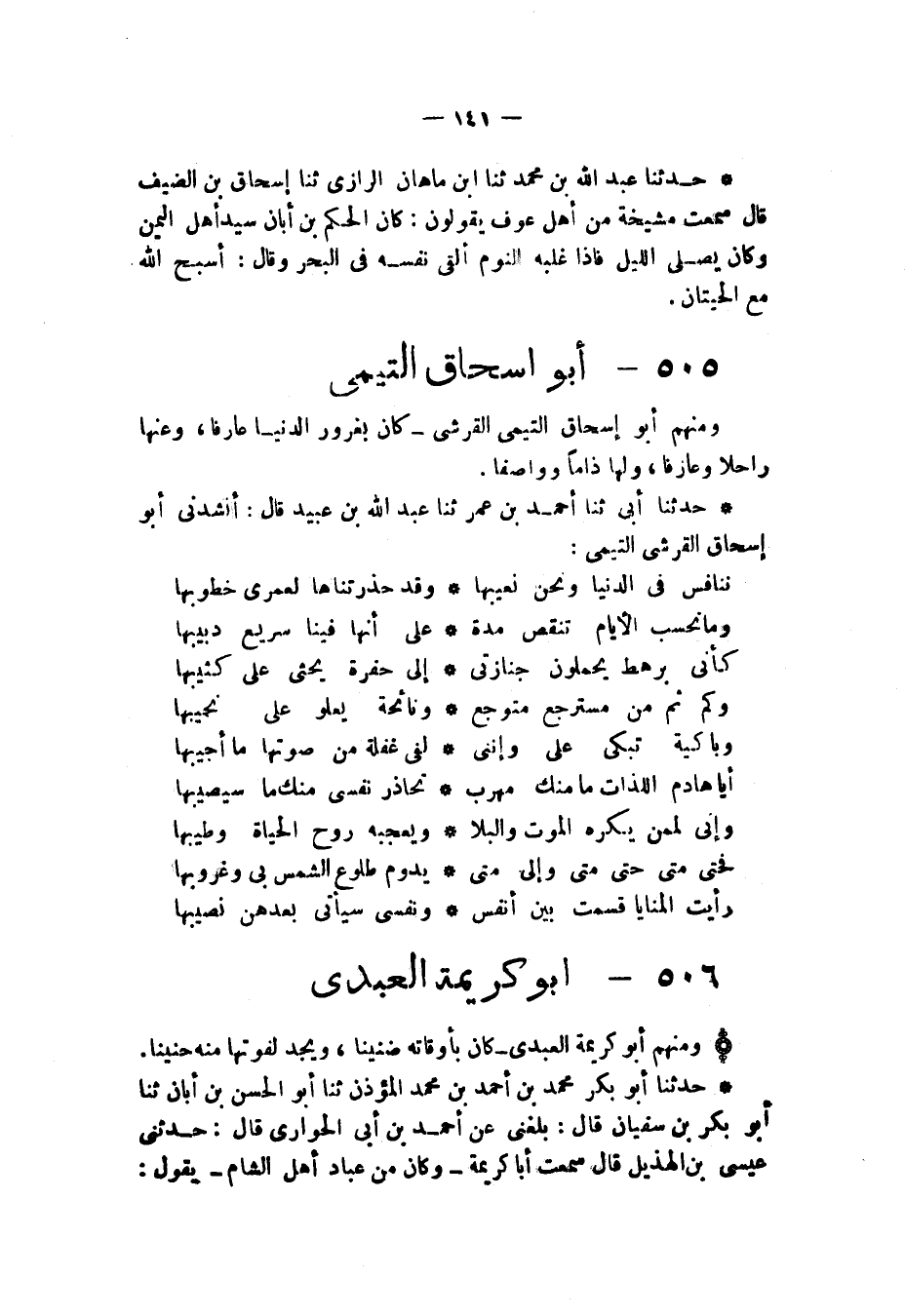 §أَبُو إِسْحَاقَ التَّيْمِيُّ وَمِنْهُمْ أَبُو إِسْحَاقَ التَّيْمِيُّ الْقُرَشِيُّ كَانَ بِغُرُورِ الدُّنْيَا عَارِفًا وَعَنْهَا رَاحِلًا وَعَازِفًا وَلَهَا ذَامًّا وَوَاصِفًا