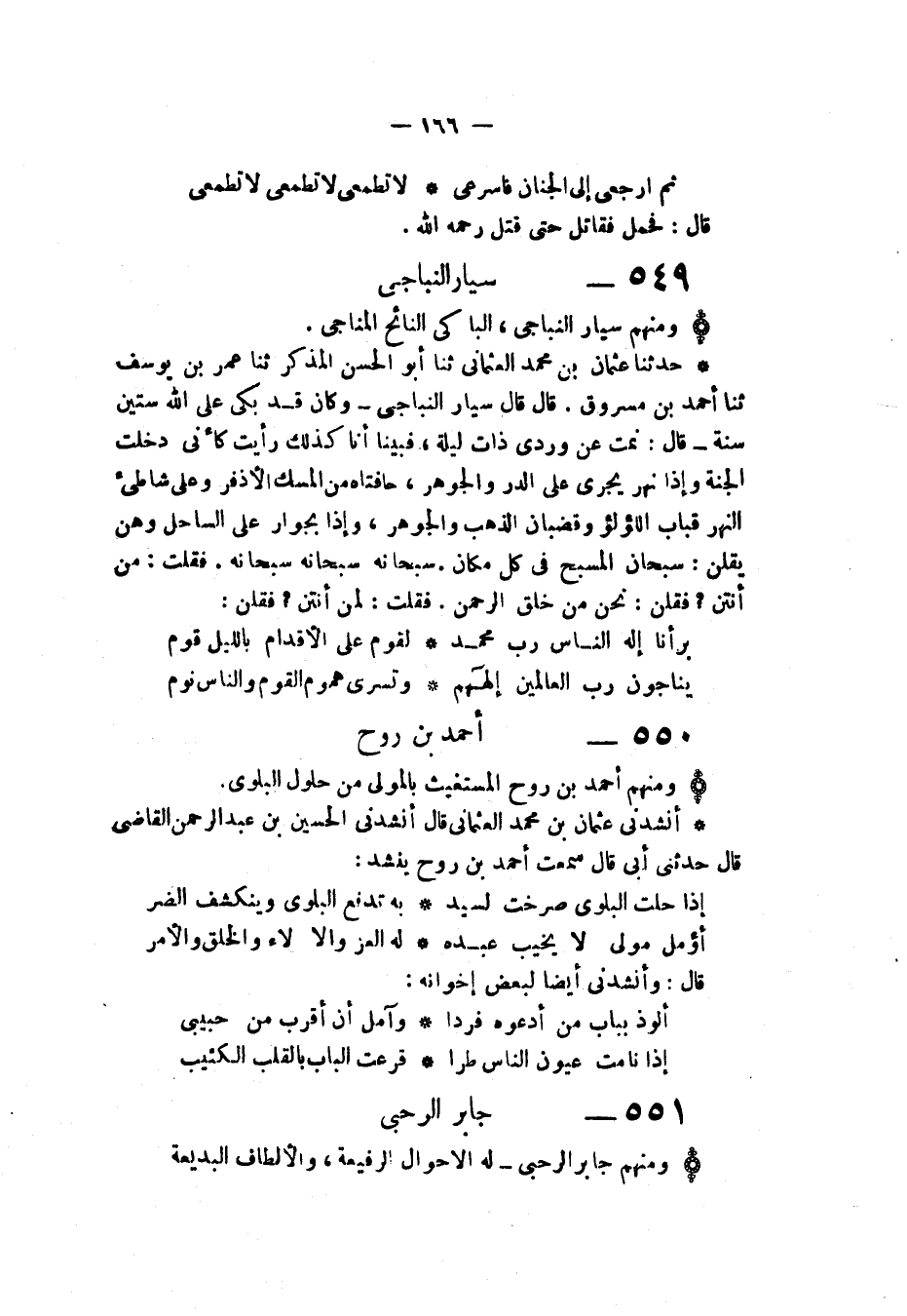 أَنْشَدَنِي عُثْمَانُ بْنُ مُحَمَّدٍ الْعُثْمَانِيُّ قَالَ: أَنْشَدَنِي الْحُسَيْنُ بْنُ عَبْدِ الرَّحْمَنِ الْقَاضِي قَالَ: حَدَّثَنِي أَبِي قَالَ: سَمِعْتُ أَحْمَدَ بْنَ رَوْحٍ , يُنْشِدُ: