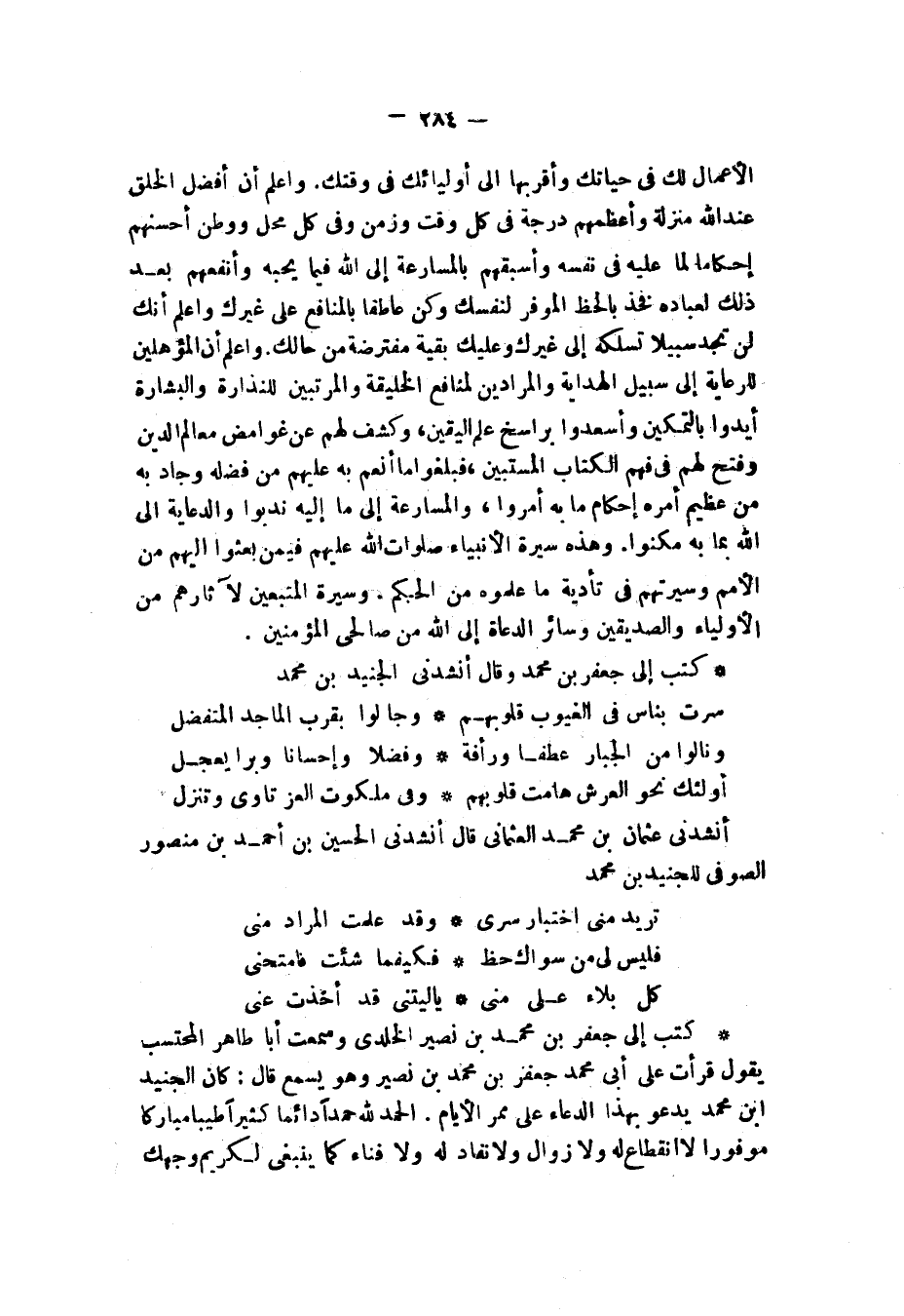 كَتَبَ إِلَيَّ جَعْفَرُ بْنُ مُحَمَّدٍ، وَقَالَ: أَنْشَدَنِي الْجُنَيْدُ بْنُ مُحَمَّدٍ:
