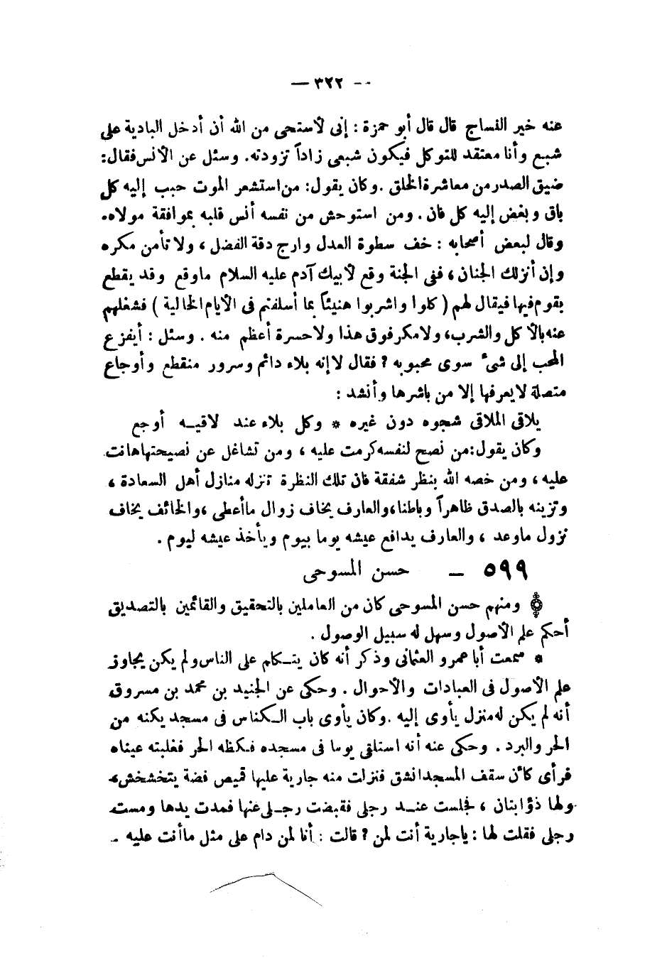 §حَسَنٌ الْمُسُوحِيُّ وَمِنْهُمْ حَسَنٌ الْمُسُوحِيُّ كَانَ مِنَ الْعَامِلِينَ بِالتَّحْقِيقِ وَالْقَائِمِينَ بِالتَّصْدِيقِ أَحْكَمَ عَلِمَ الْأُصُولِ وَسَهُلَ لَهُ سَبِيلُ الْوُصُولُ