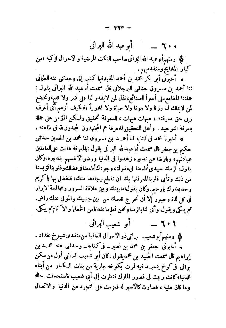 §أَبُو شُعَيْبٍ الْبَرَاثِيُّ وَمِنْهُمْ أَبُو شُعَيْبٍ الْبَرَاثِيُّ ذُو الْأَحْوَالِ الْعَالِيَةِ مِنْ مُتَقَدِّمِي شُيوخِ بَغْدَادَ