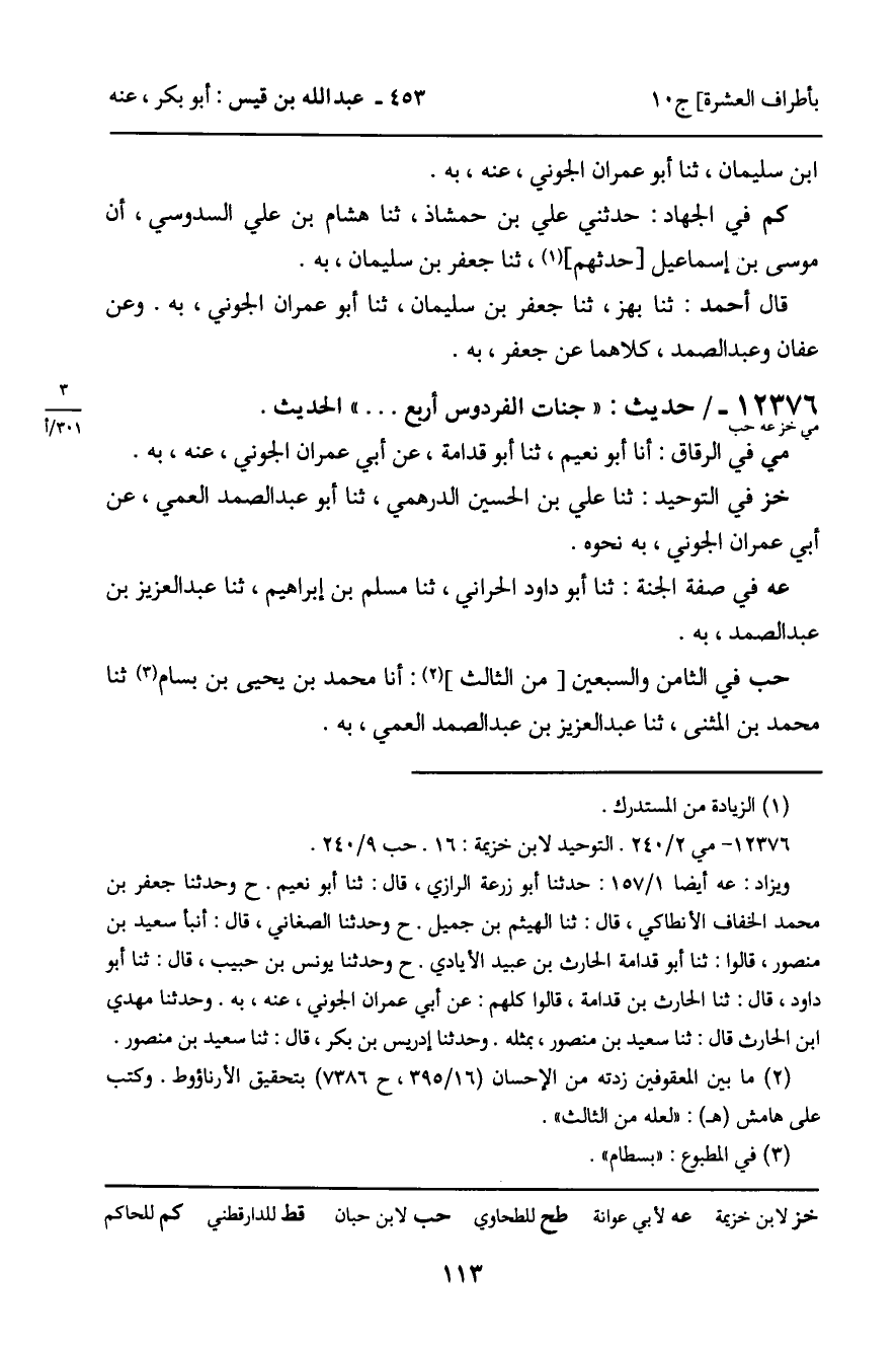 خز في التوحيد: ثنا علي بن الحسين الدرهمي، ثنا أبو عبد الصمد العمي، عن أبي عمران الجوني، به نحوه.