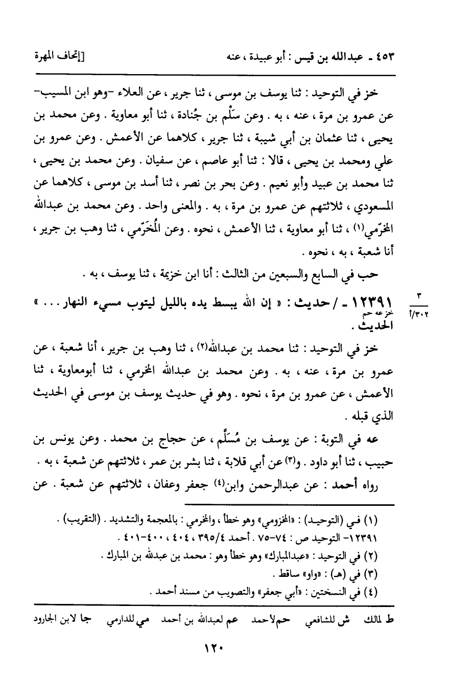 12391 - حديث (خز عه حم) : " إن الله يبسط يده بالليل ليتوب مسيء النهار. . . . " الحديث.
