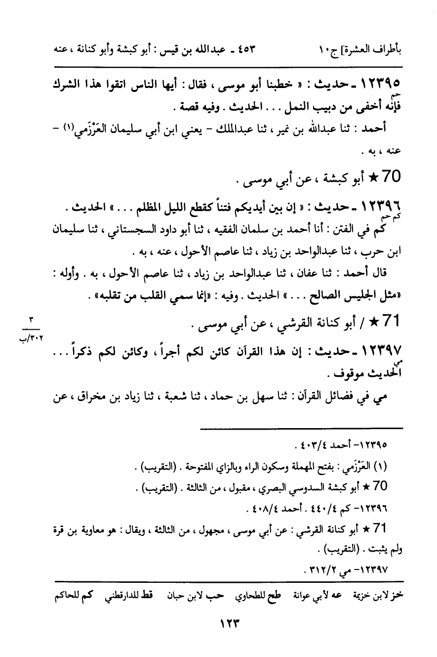 12395 - حديث (حم) : " خطبنا أبو موسى، فقال: " أيها الناس اتقوا هذا الشرك فإنه أخفى من دبيب النمل. . . " الحديث. وفيه قصة.