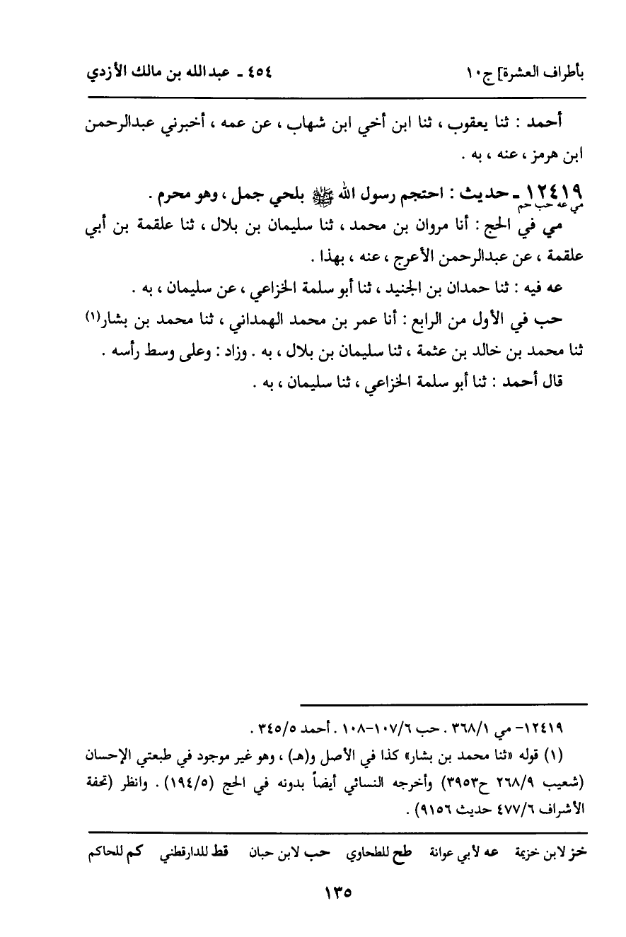 مي في الحج: أنا مروان بن محمد، ثنا سليمان بن بلال، ثنا علقمة بن أبي علقمة، عن عبد الرحمن الأعرج، عنه، بهذا.