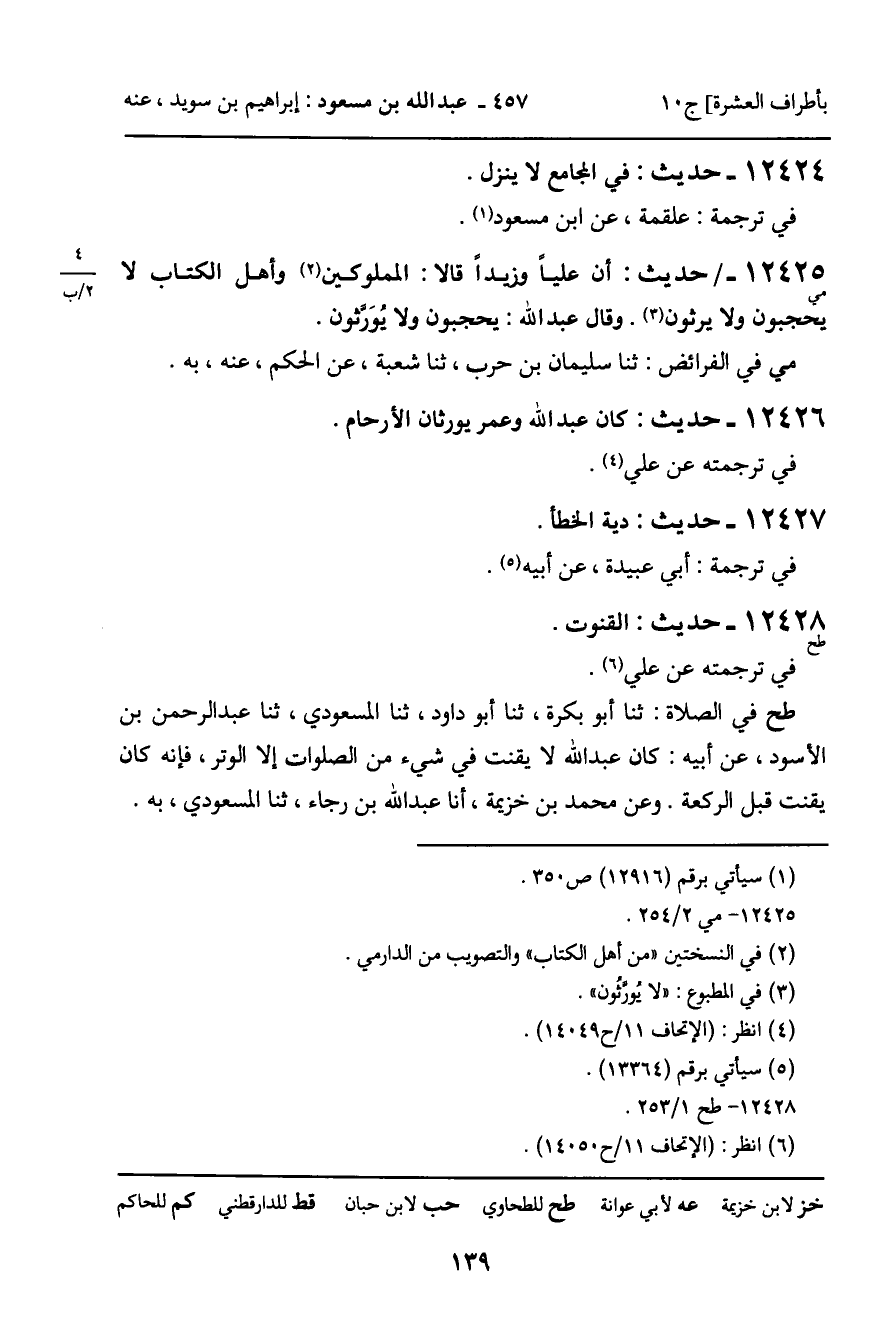 12425 - حديث (مي) : " أن عليا وزيدا قالا: المملوكين وأهل الكتاب لا يحجبون ولا يرثون. وقال عبد الله: يحجبون ولا يورَثون ".