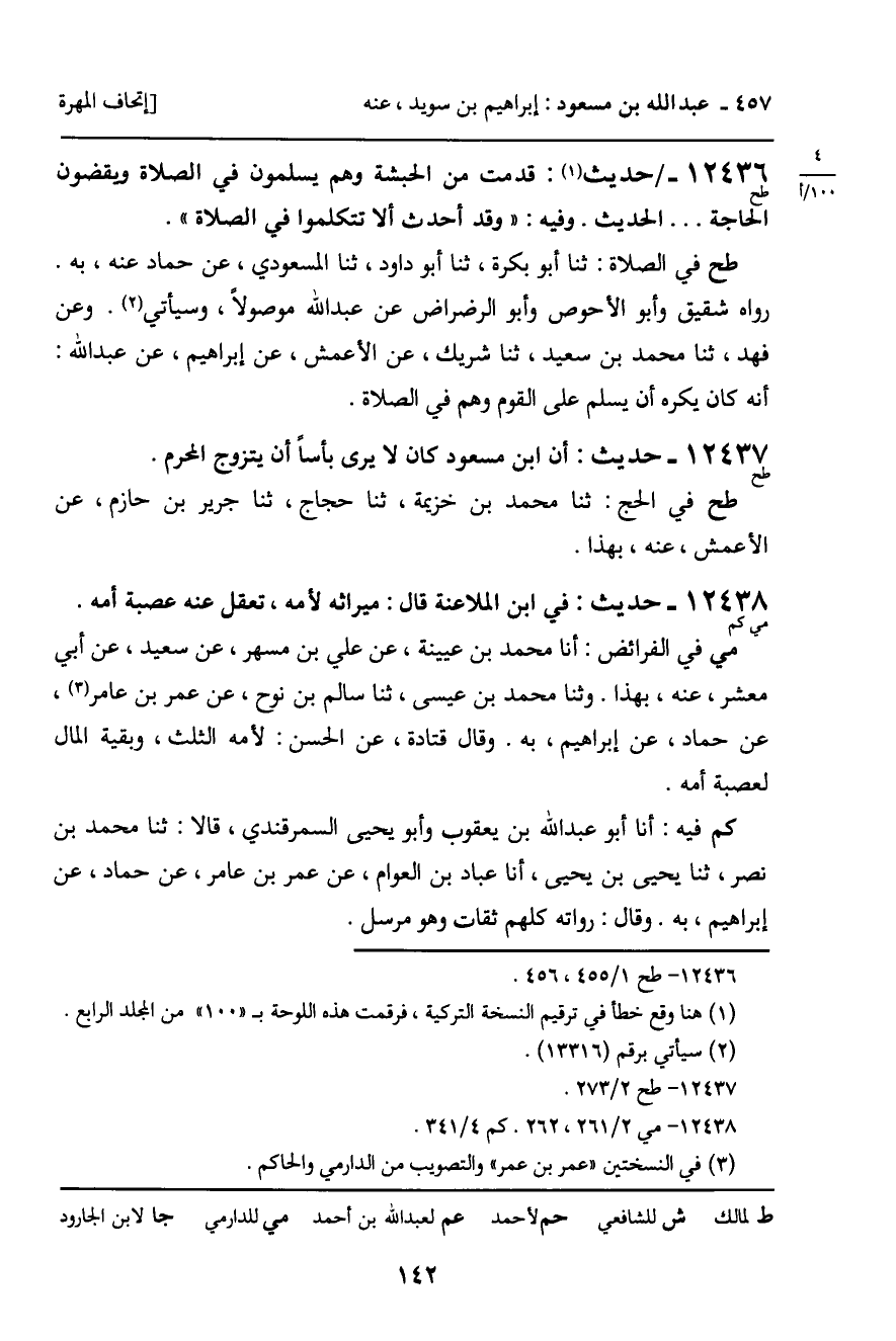 12436 - حديث (طح) : قدمت من الحبشة وهم يسلمون في الصلاة ويقضون الحاجة. . . الحديث. وفيه: " وقد أحدث ألا تتكلموا في الصلاة ".