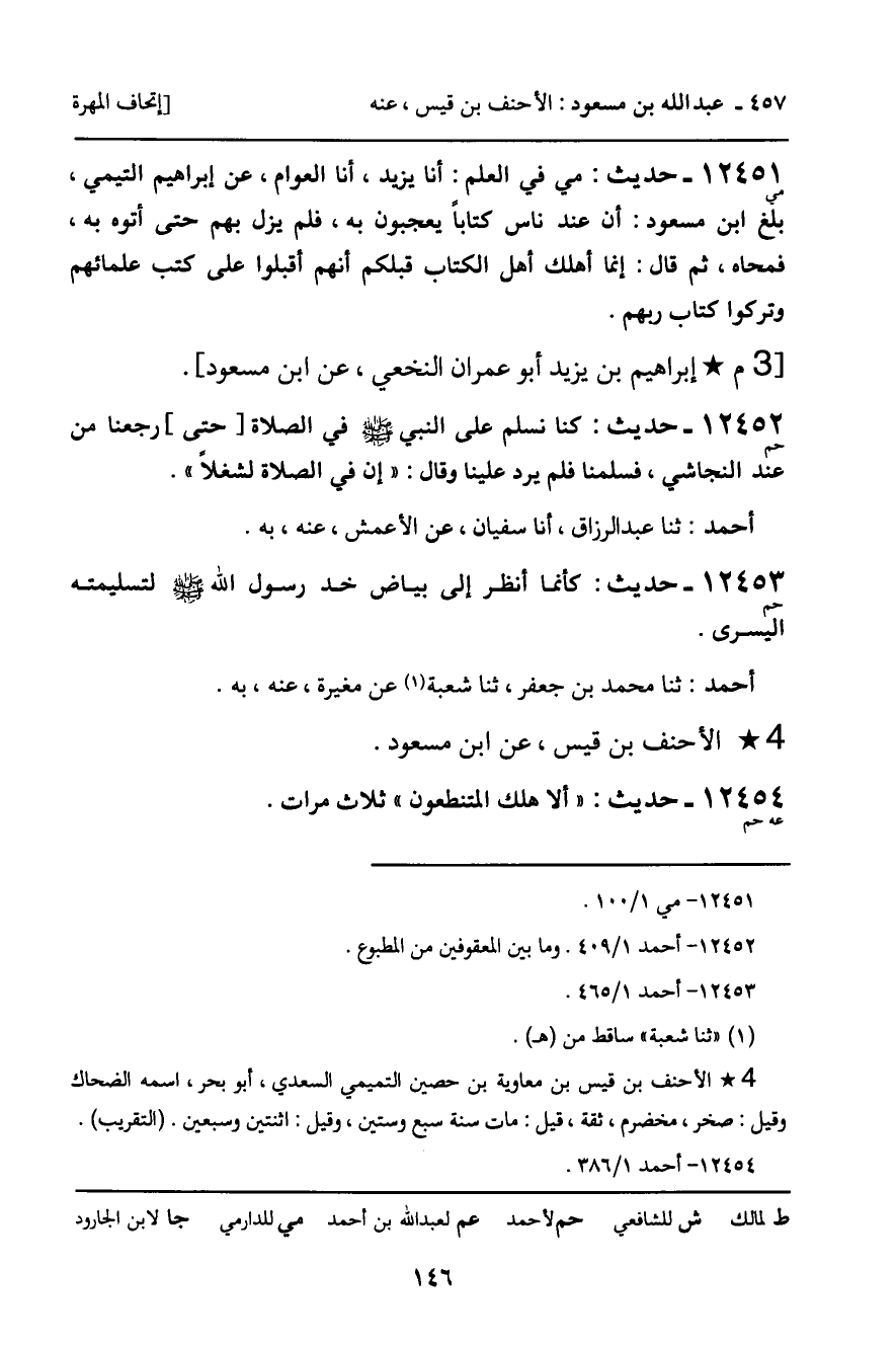 12454 - حديث (عه حم) : " ألا هلك المتنطعون " ثلاث مرات