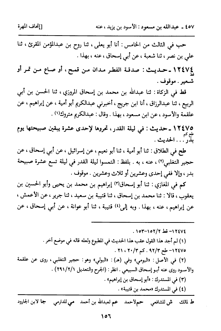 12474 - حديث (قط) : " صدقة الفطر مدان من قمح، أو صاع من تمر أو شعير ". موقوف.