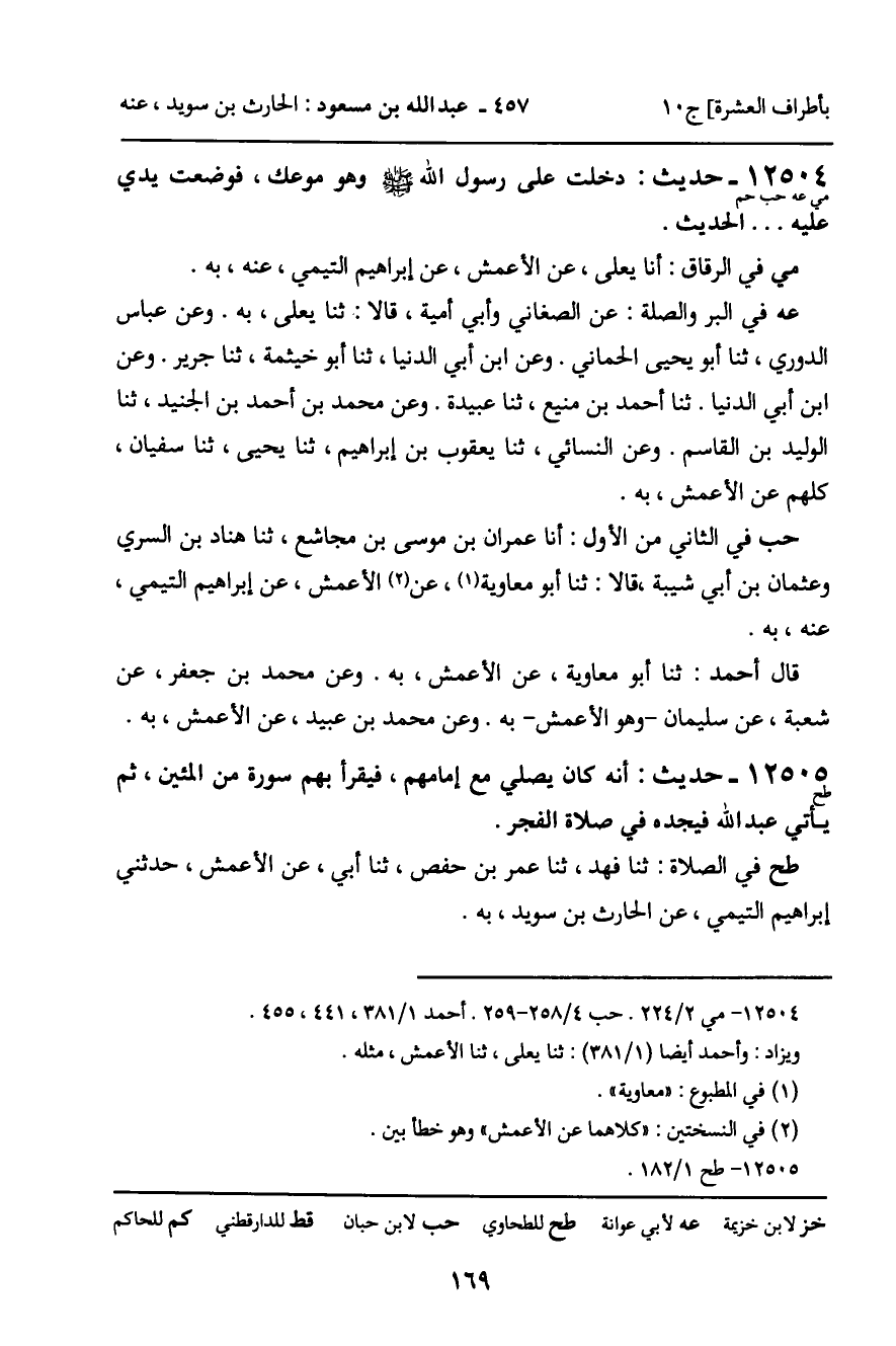 طح في الصلاة: ثنا فهد، ثنا عمر بن حفص، ثنا أبي، عن الأعمش، حدثني إبراهيم التيمي، عن الحارث بن سويد، به.