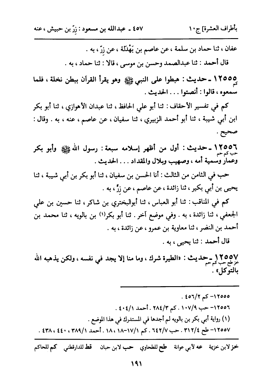 12557 - حديث (خز طح حب كم حم) : " الطيرة شرك، وما منا إلا يجد في نفسه، ولكن يذهبه الله بالتوكل "
