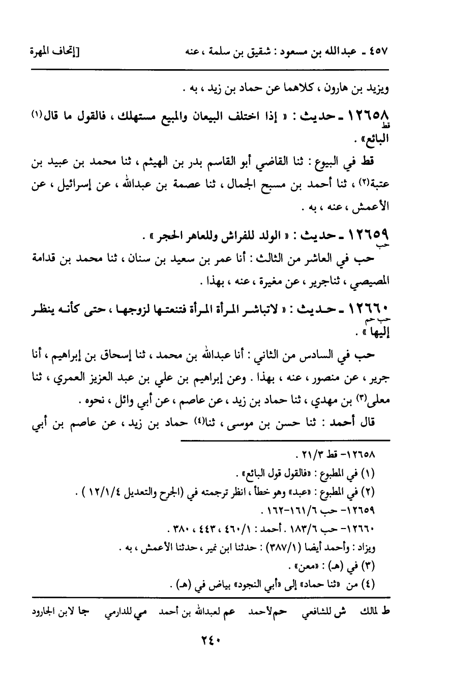 12659 - حديث (حب) : " الولد للفراش وللعاهر الحجر ".