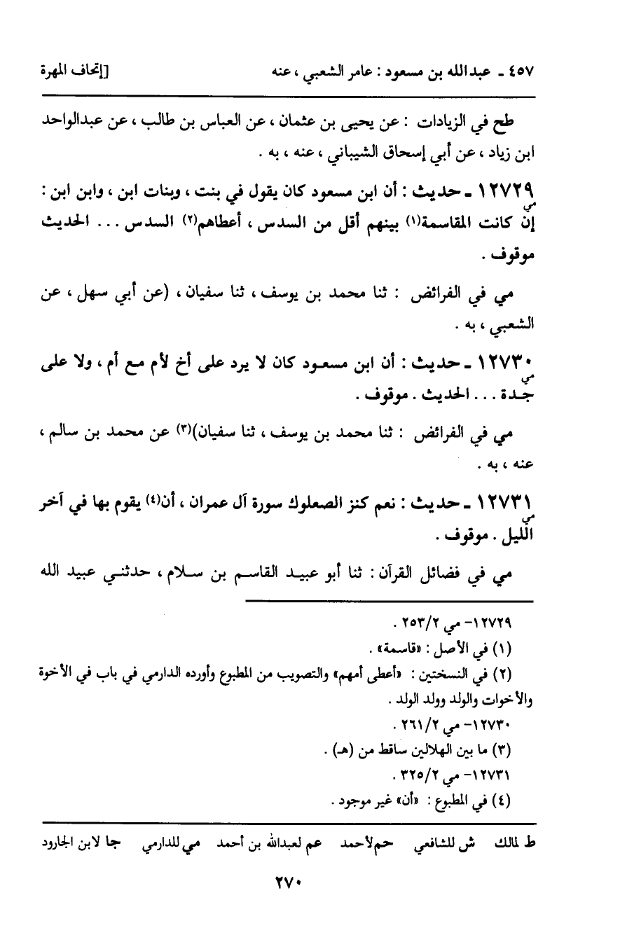 12730 - حديث (مي) : أن ابن مسعود كان لا يرد على أخ لأم مع أم، ولا على جدة. . . الحديث. موقوف.