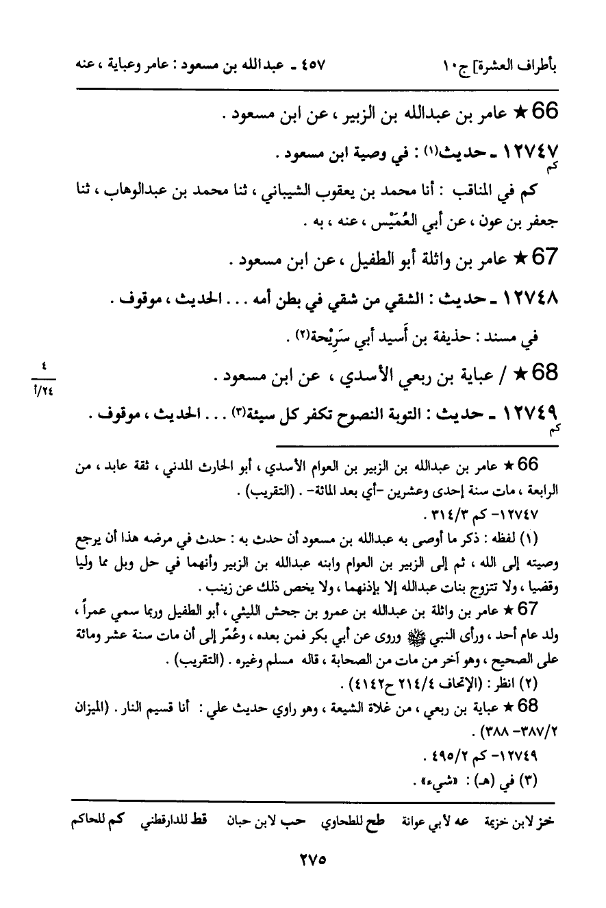 ـ عامر بن عبد الله بن الزبير، عن ابن مسعود.