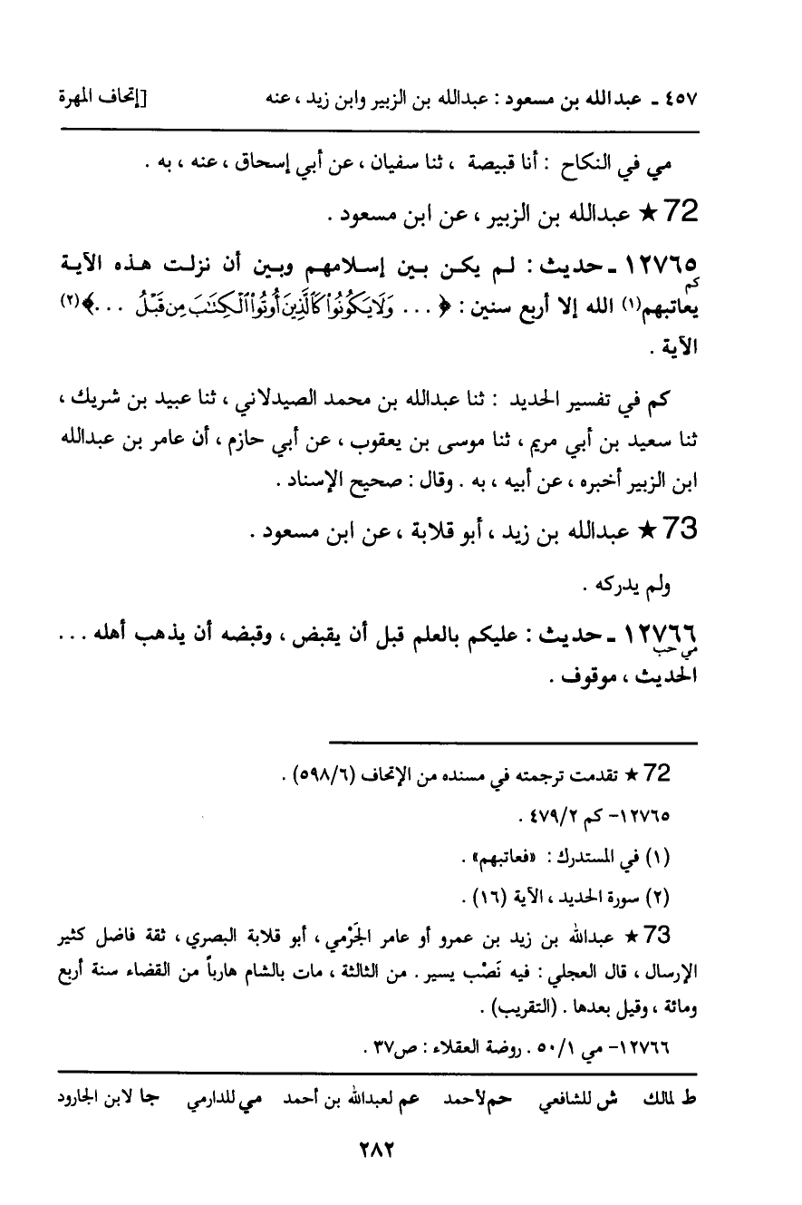ـ عبد الله بن الزبير، عن ابن مسعود.